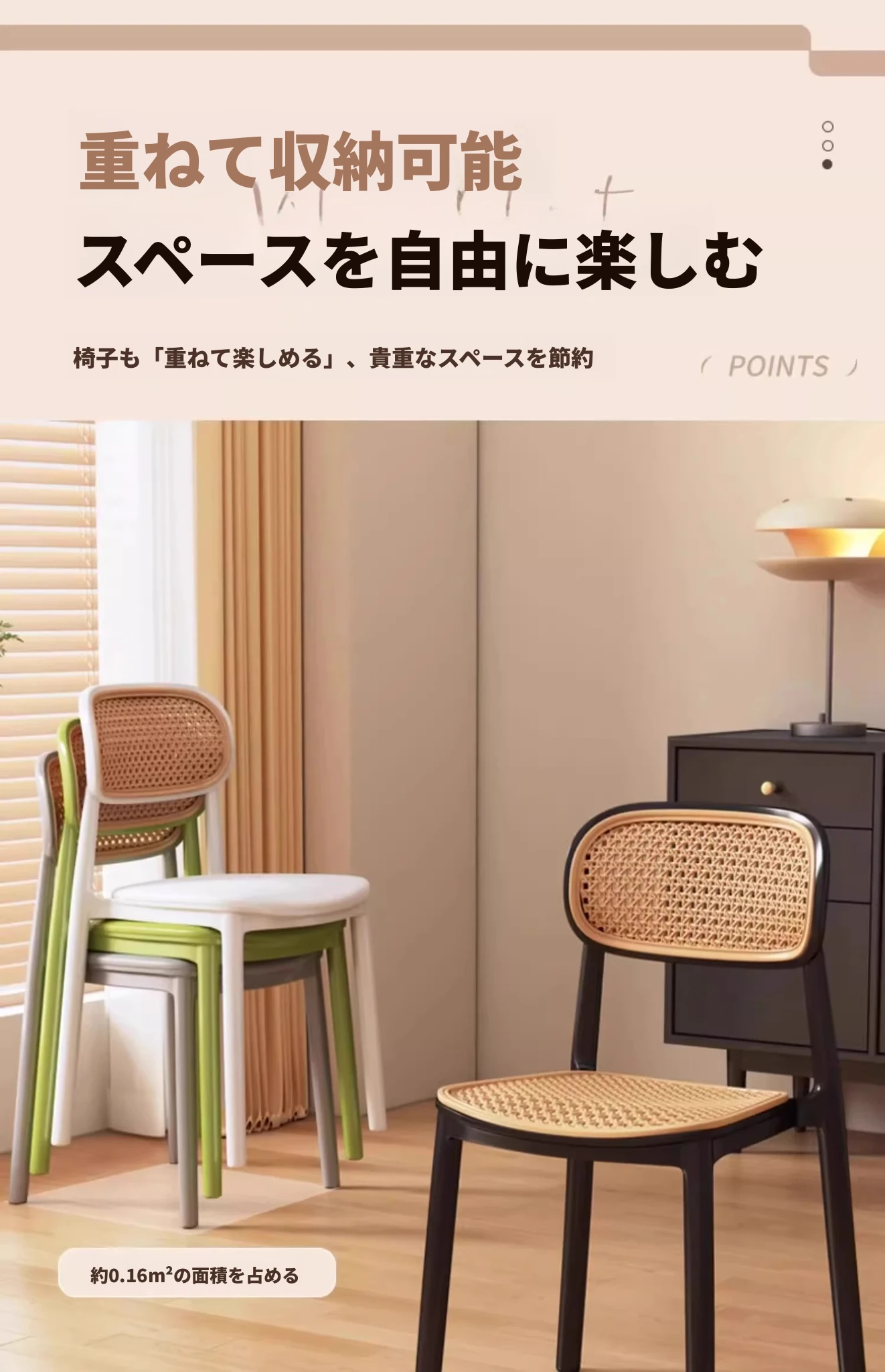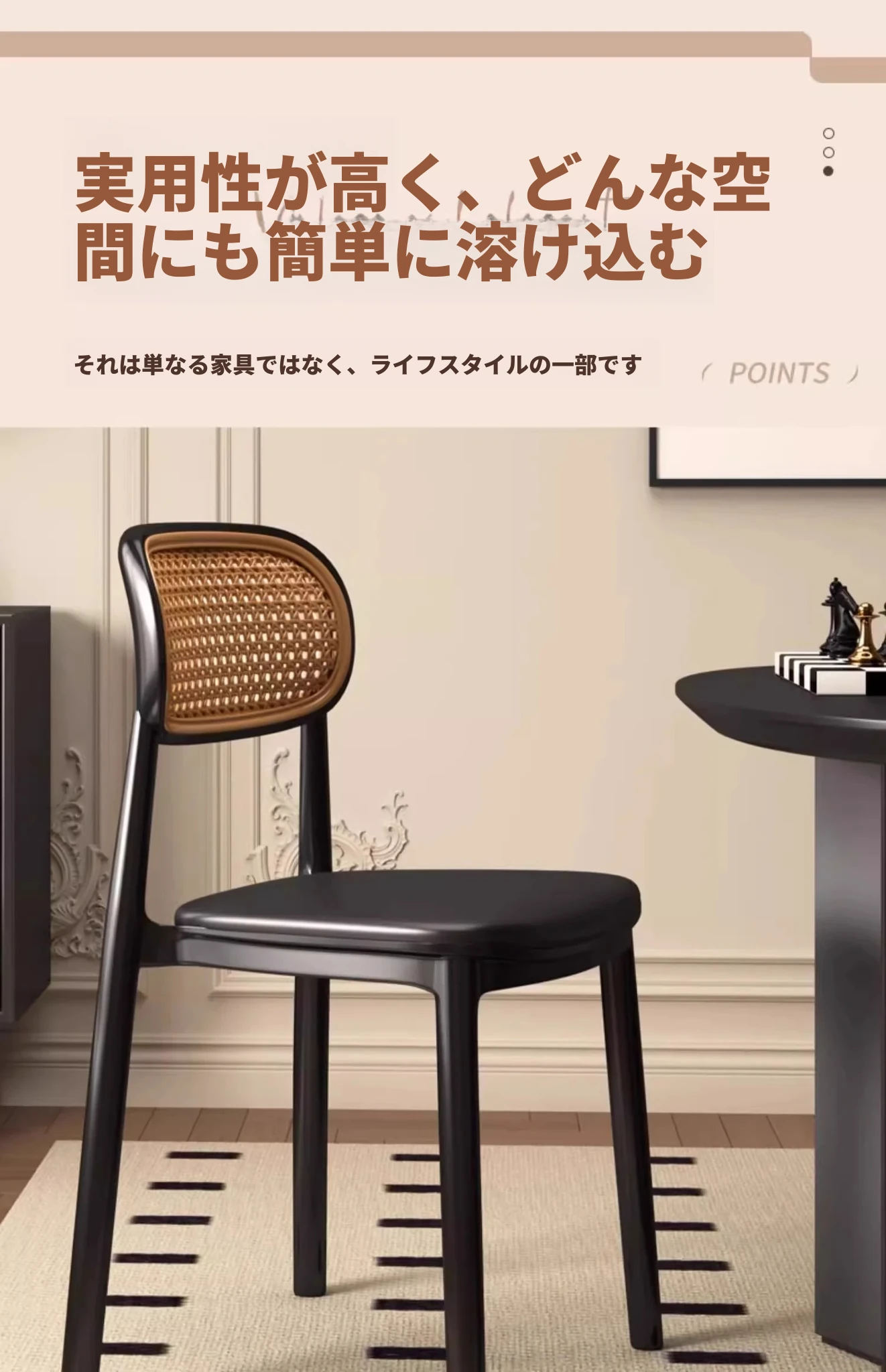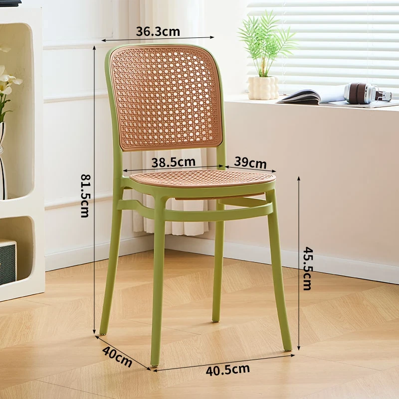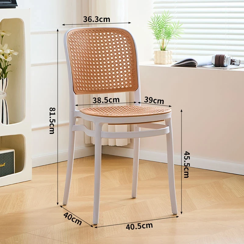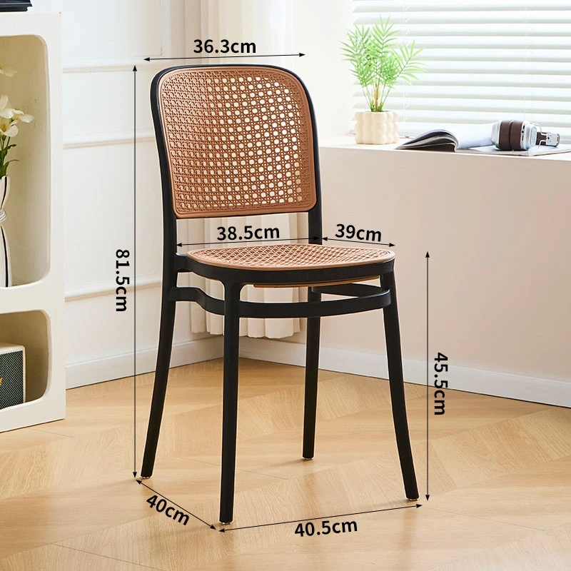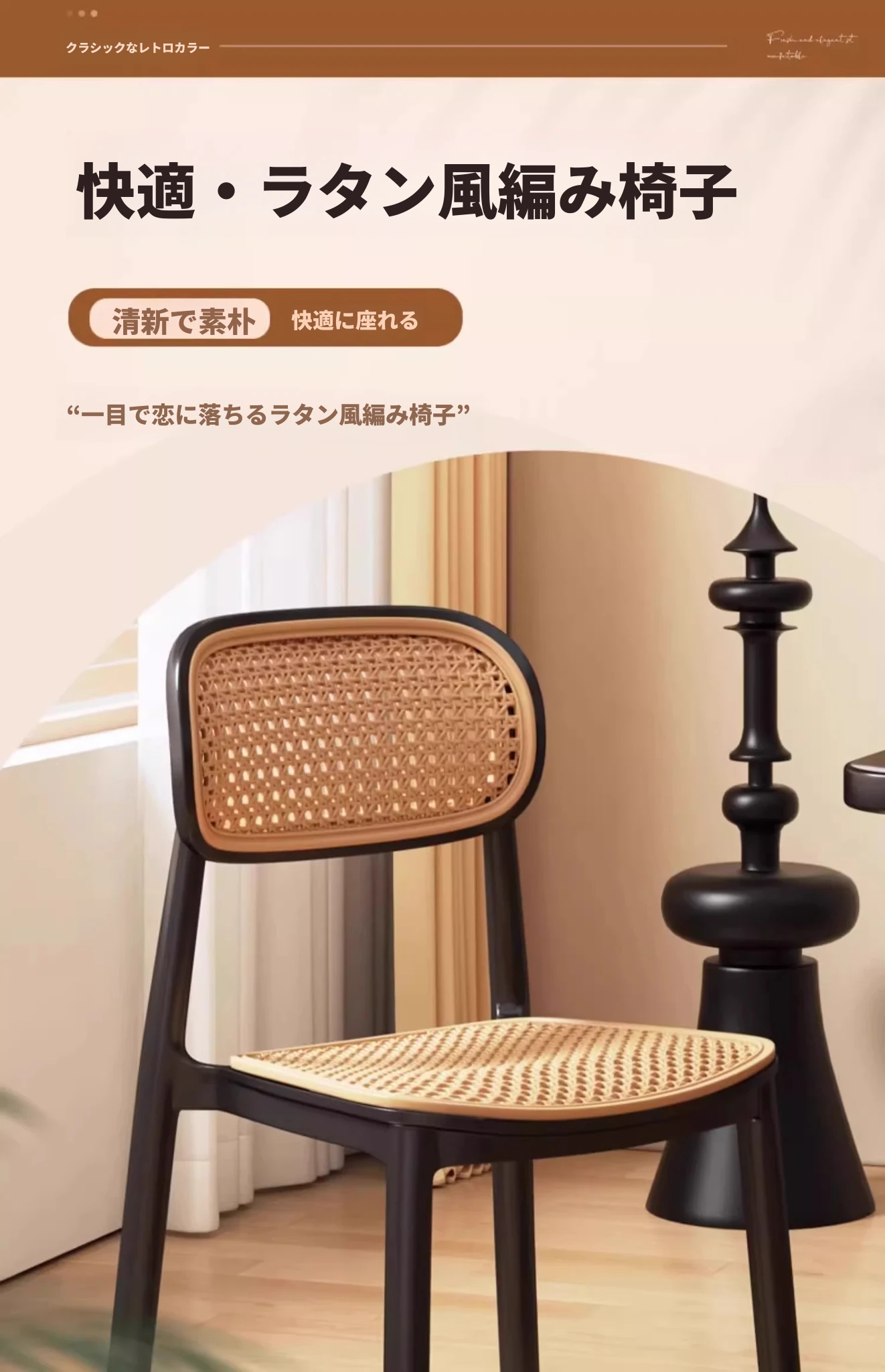 高級感溢れる藤編みの椅子!家庭用に最適な軽奢デザインの背もたれ付きダイニングチェア。厚手のプラスチック素材で頑丈、重ねて収納可能。ダイニングルームをスタイリッシュに演出します!
