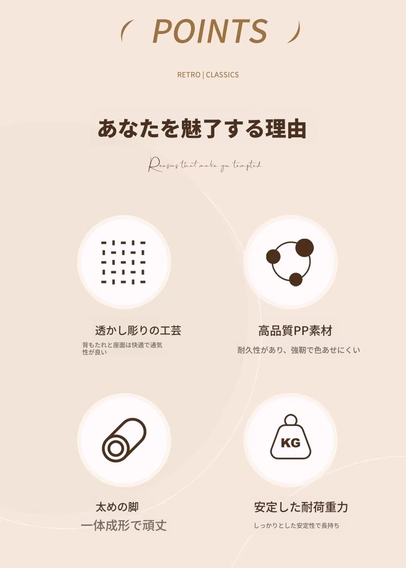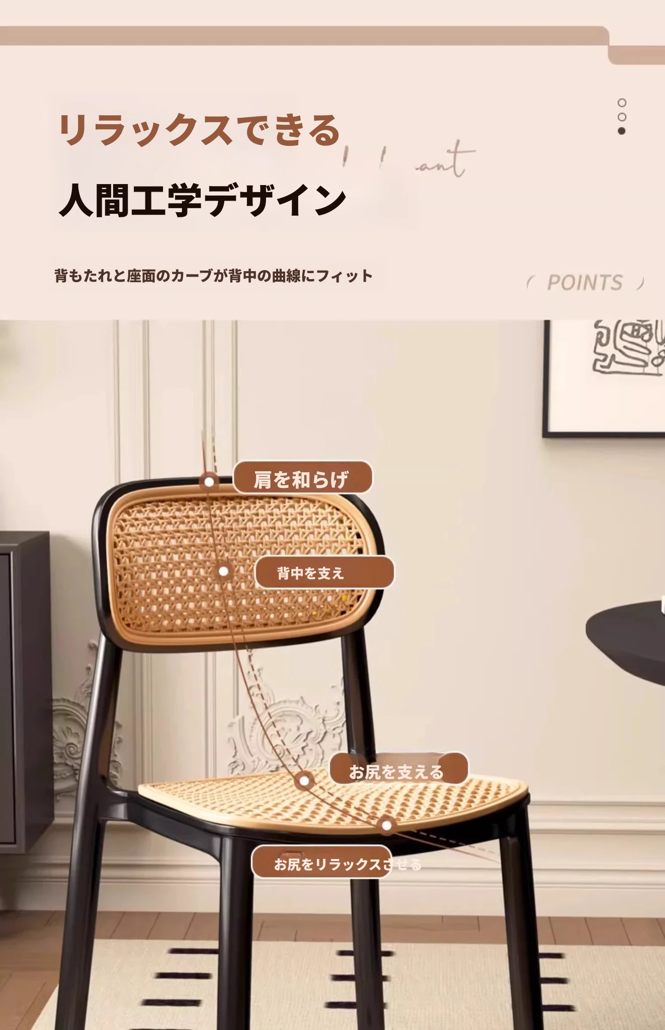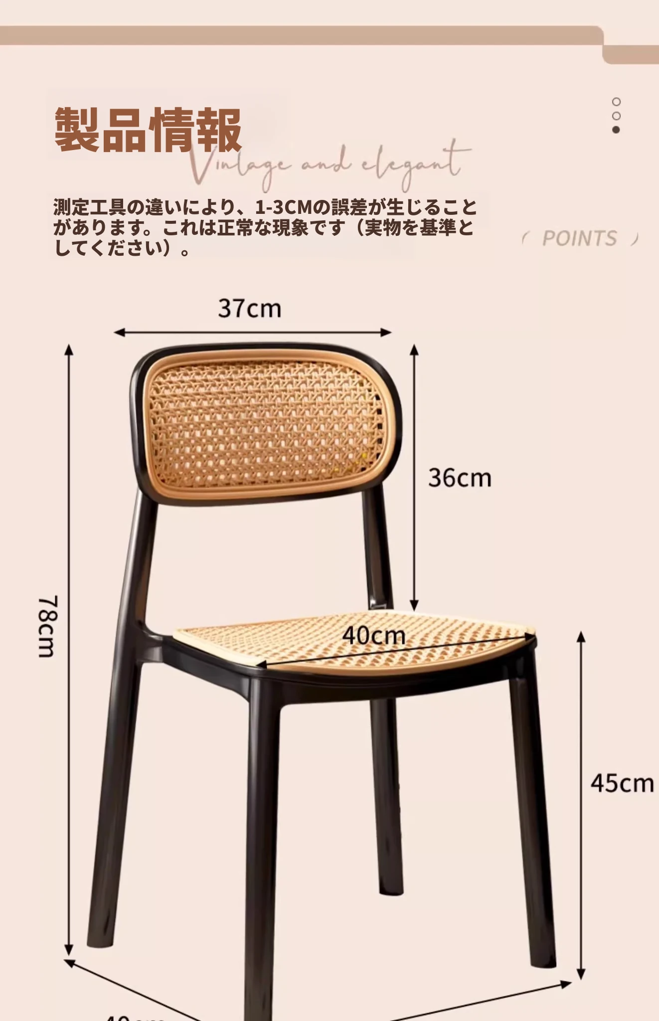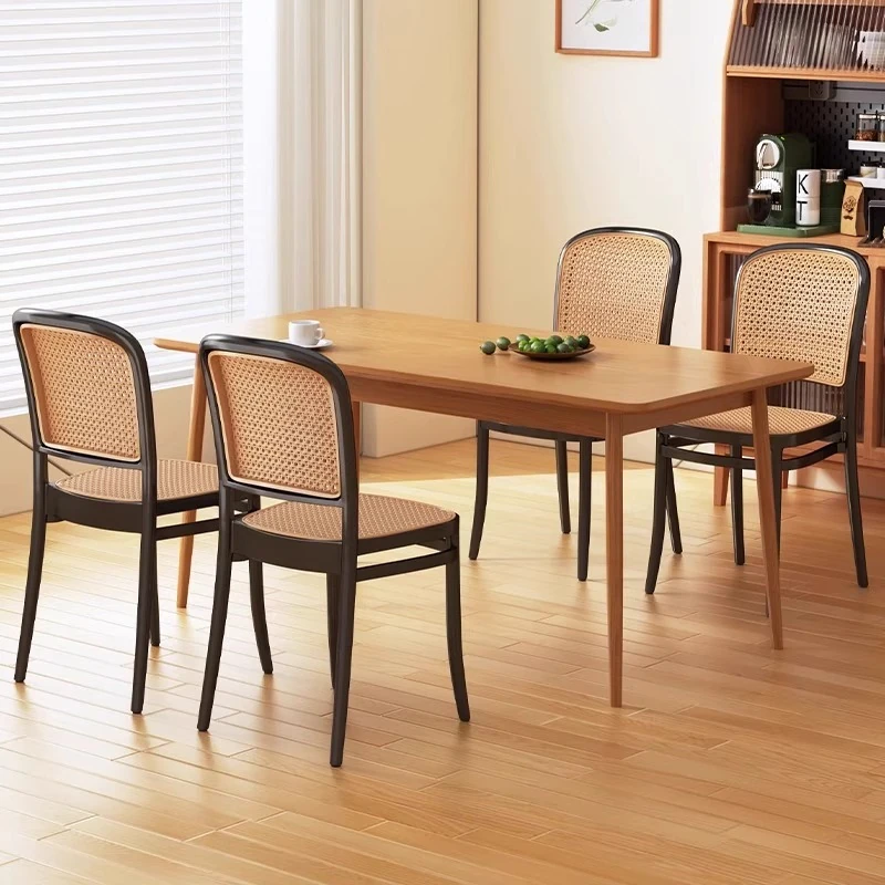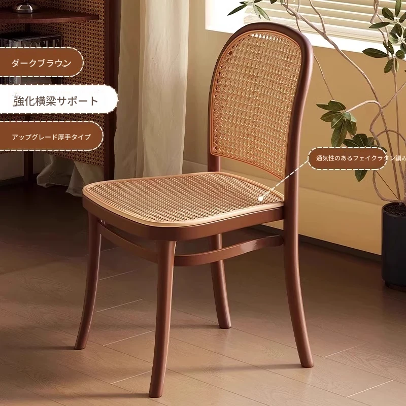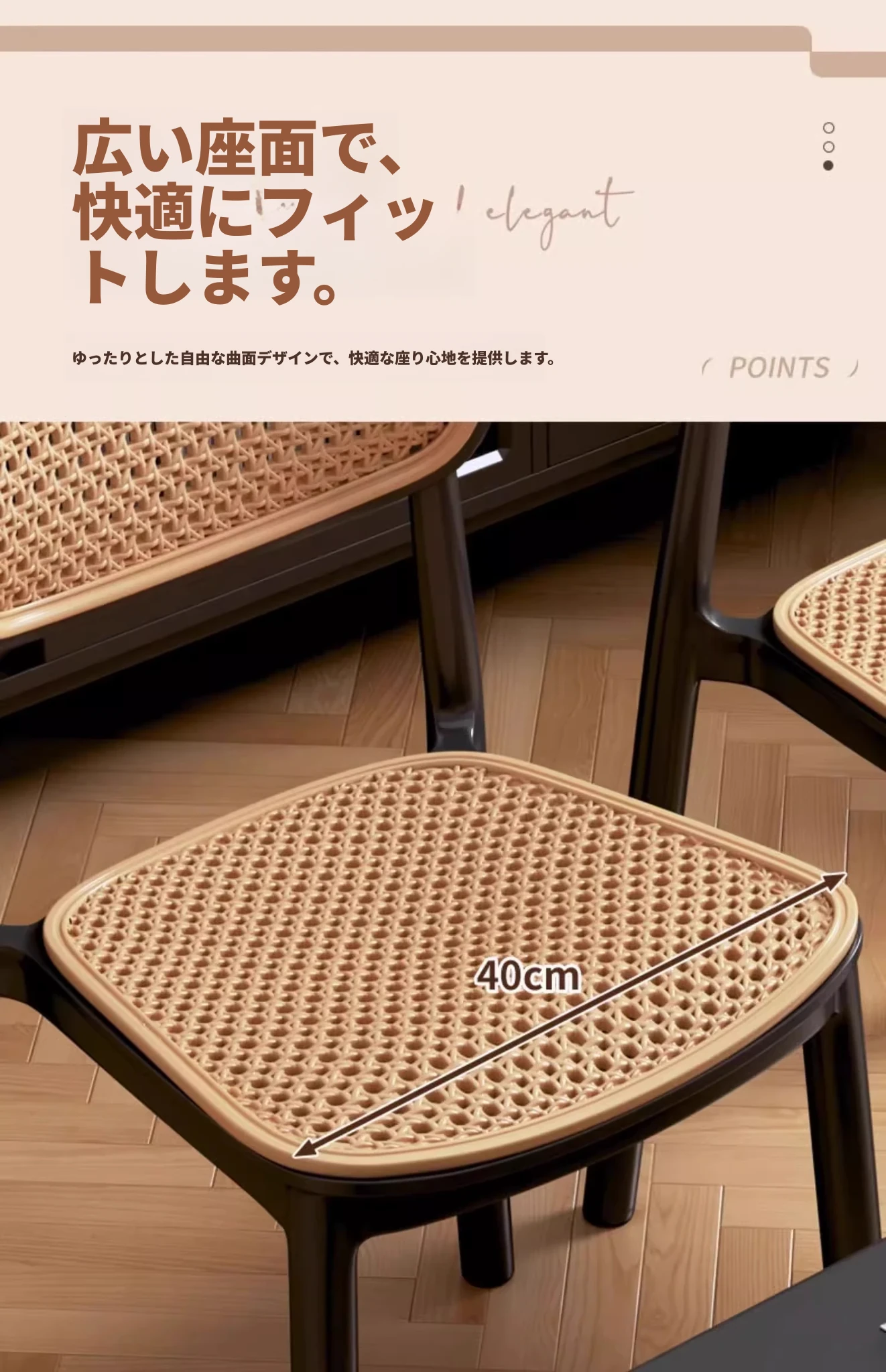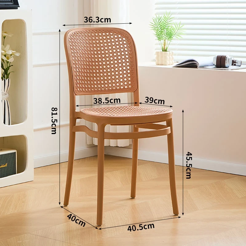 高級感溢れる藤編みの椅子!家庭用に最適な軽奢デザインの背もたれ付きダイニングチェア。厚手のプラスチック素材で頑丈、重ねて収納可能。ダイニングルームをスタイリッシュに演出します!