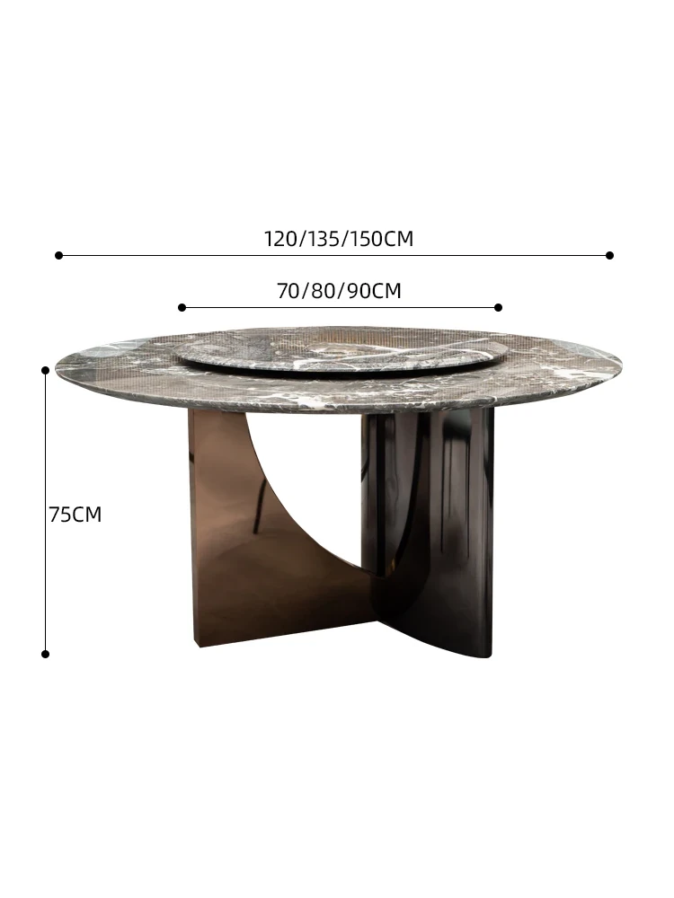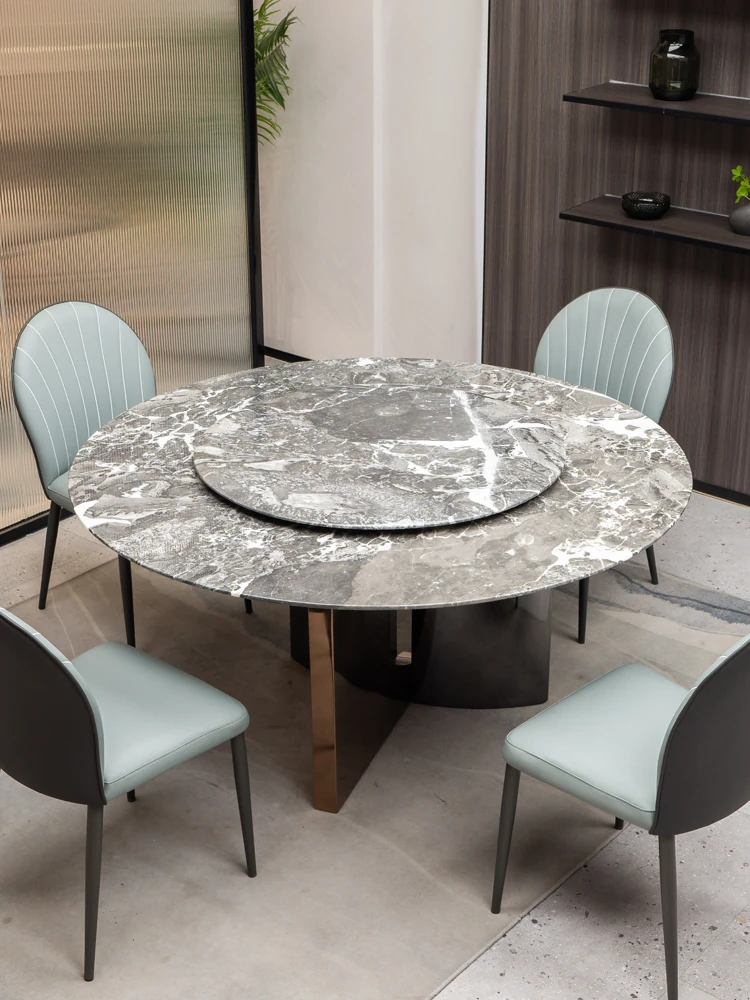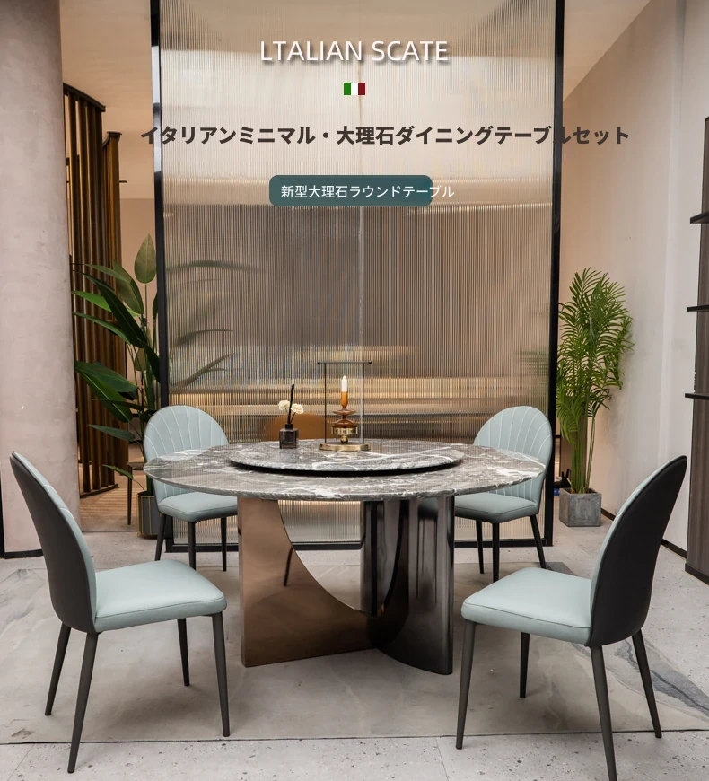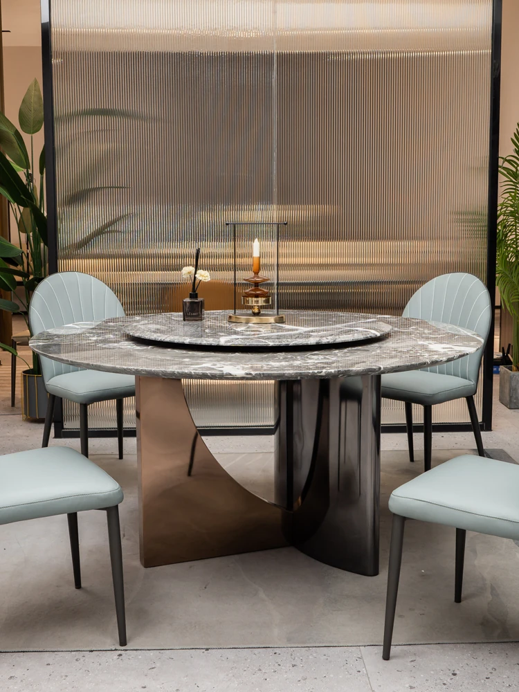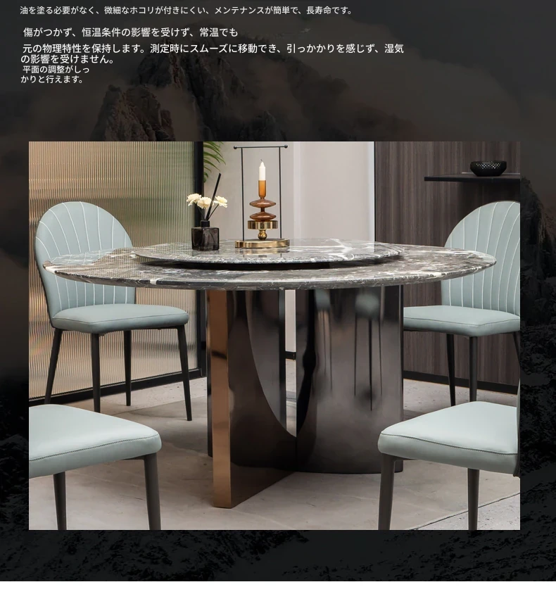大理石とステンレスの軽奢華イタリアンミニマルデザインダイニングテーブル - 家庭用回転式ラウンドテーブル、大型リビングに最適!