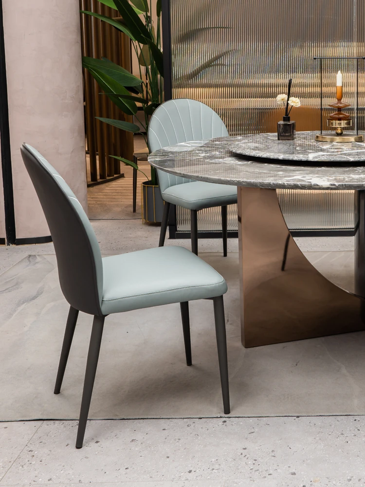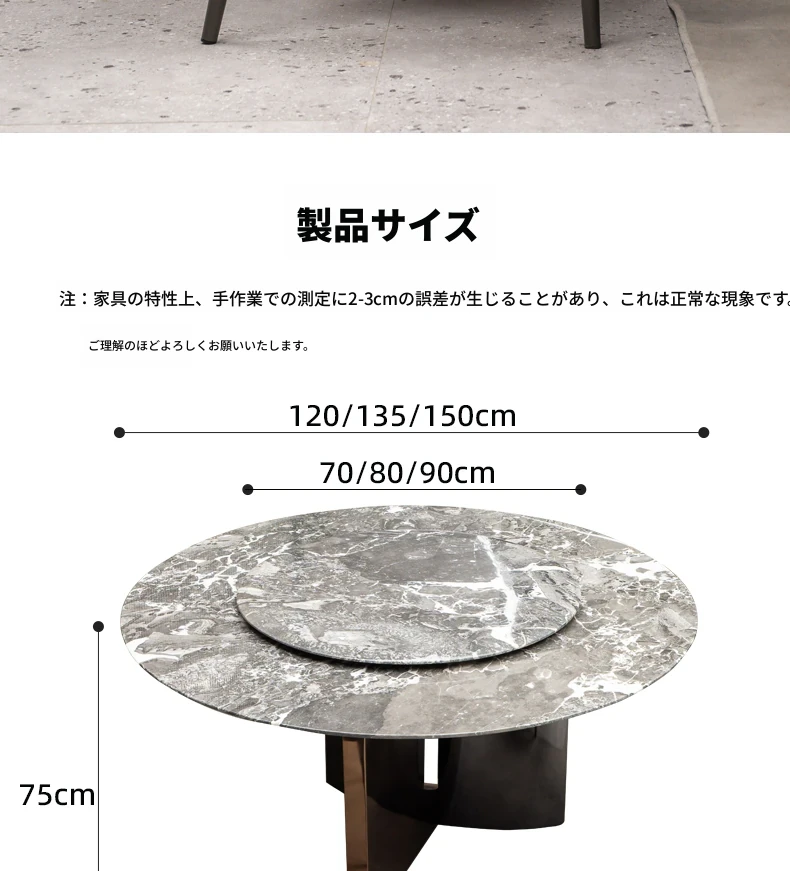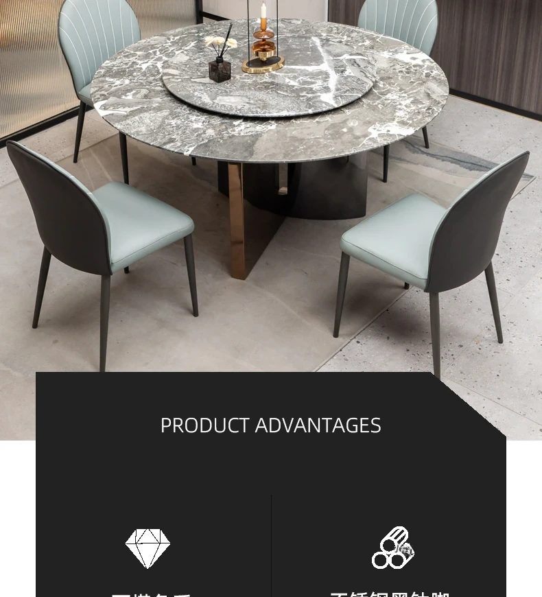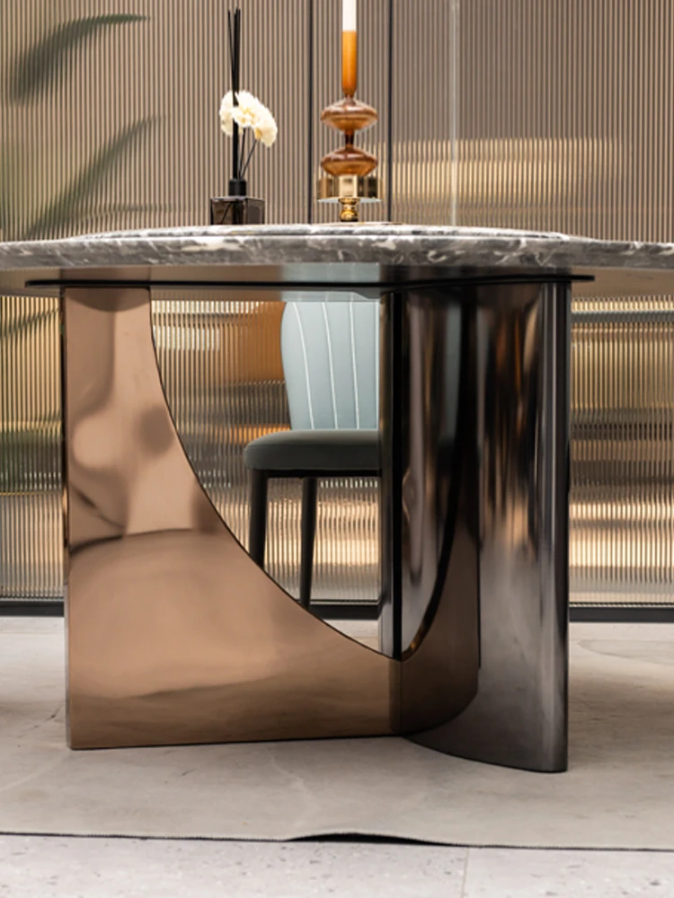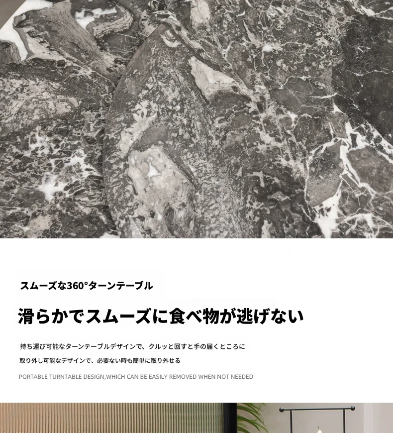 大理石とステンレスの軽奢華イタリアンミニマルデザインダイニングテーブル - 家庭用回転式ラウンドテーブル、大型リビングに最適!