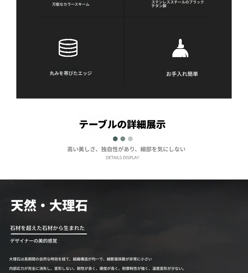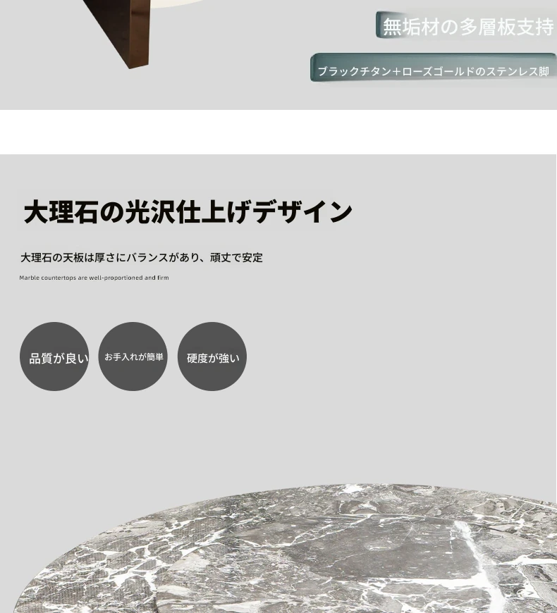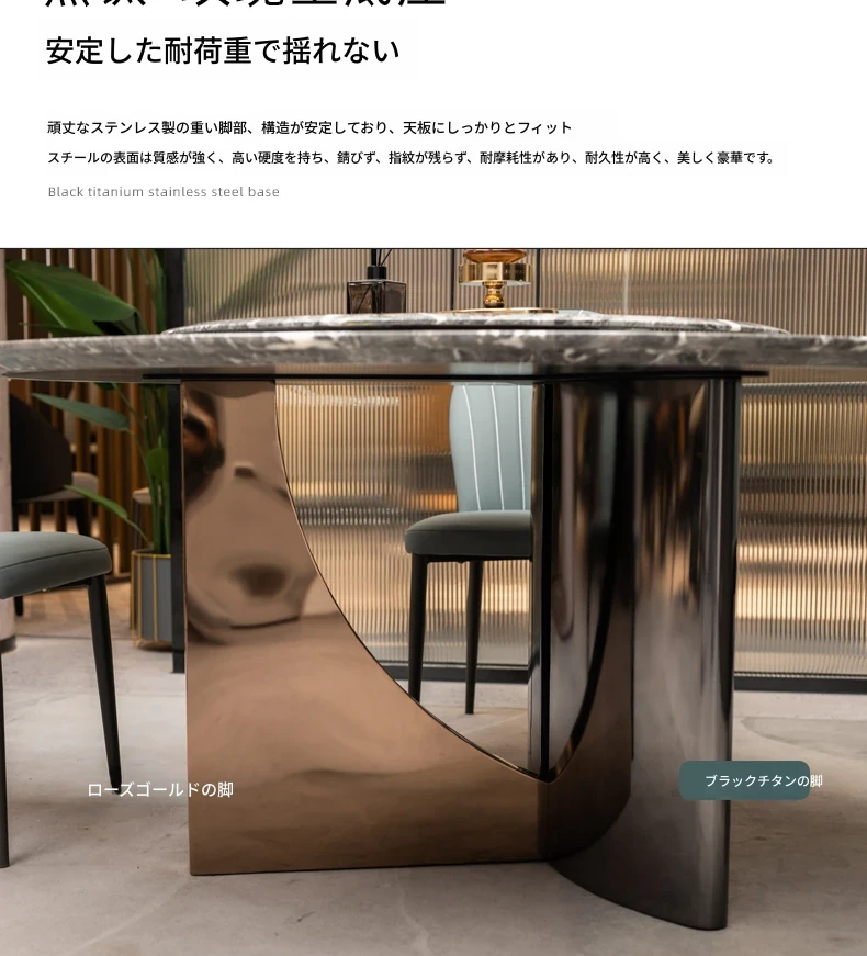 ステンレススチールブラックチタン脚+大理石天板(テクスチャ:碧海雲天)(小回転盤なし)