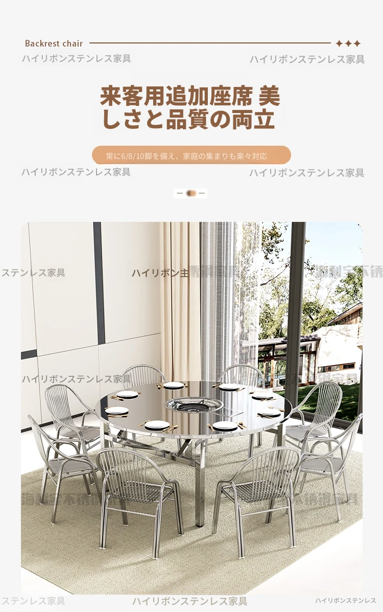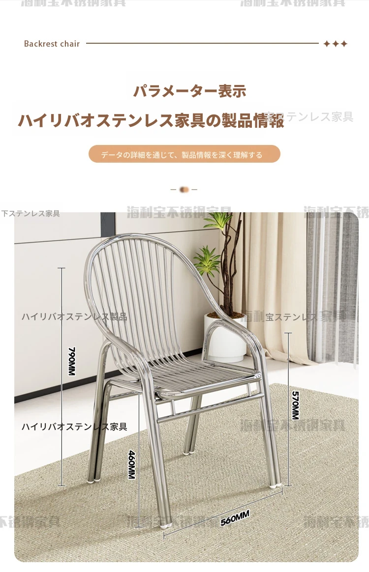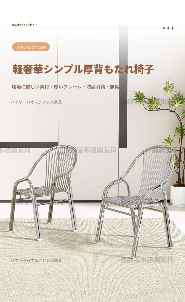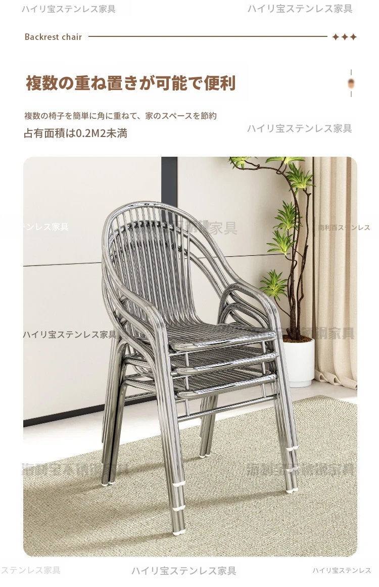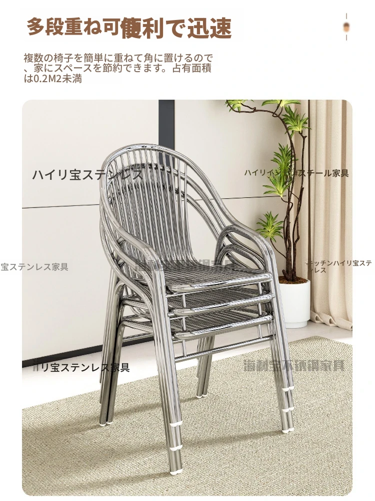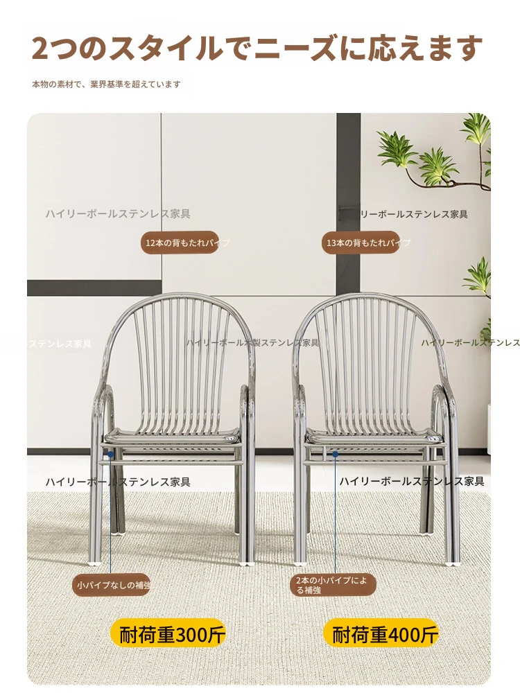 304厚手ステンレス製チェア 背もたれ付き 家庭用アームレスト付きリラックスチェア アウトドア用頑丈なダイニングチェア 椅子としても使える!耐久性抜群でおしゃれなデザイン、快適な座り心地を実現!