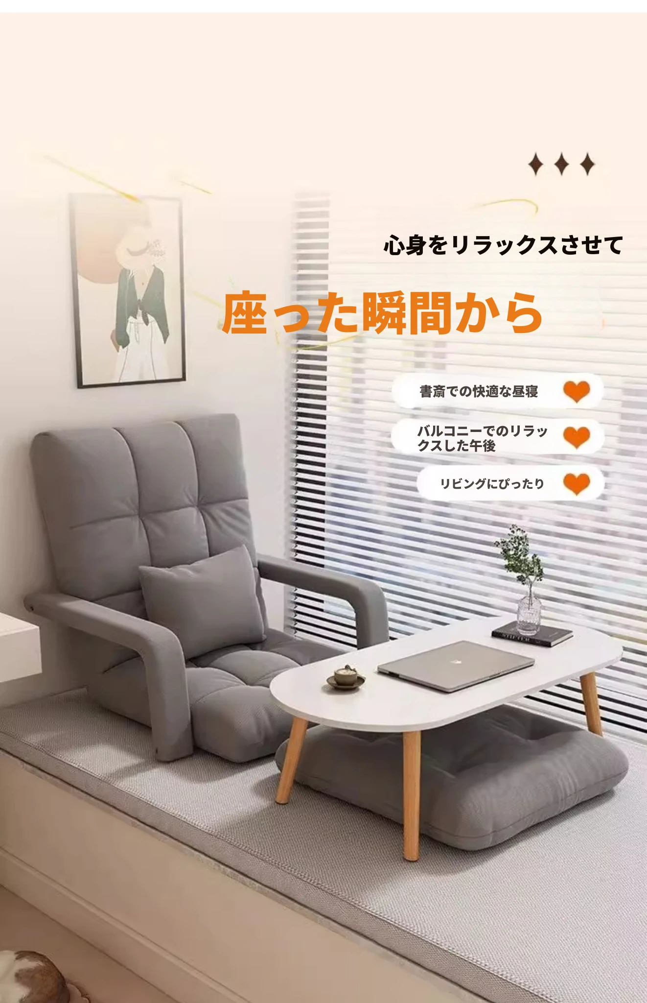 寝室やリビングに最適!寝ながら使えるゲーミングリクライニングチェア - 折りたたみ式で一人用、快適なソファとしても大活躍!窓辺や寮でも使える便利なアイテム。