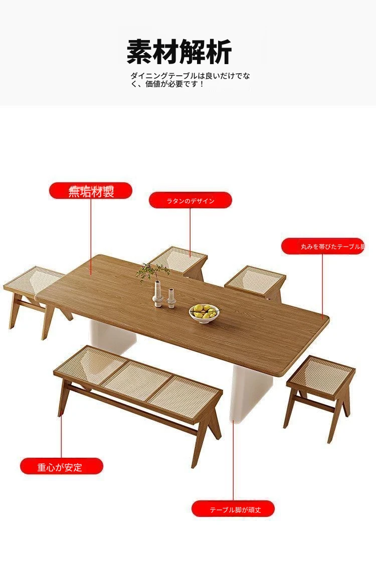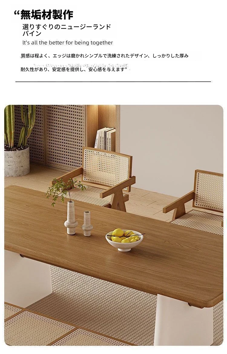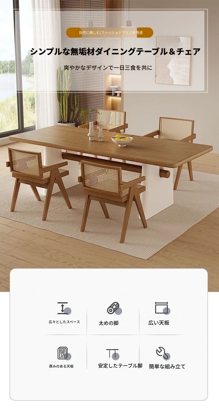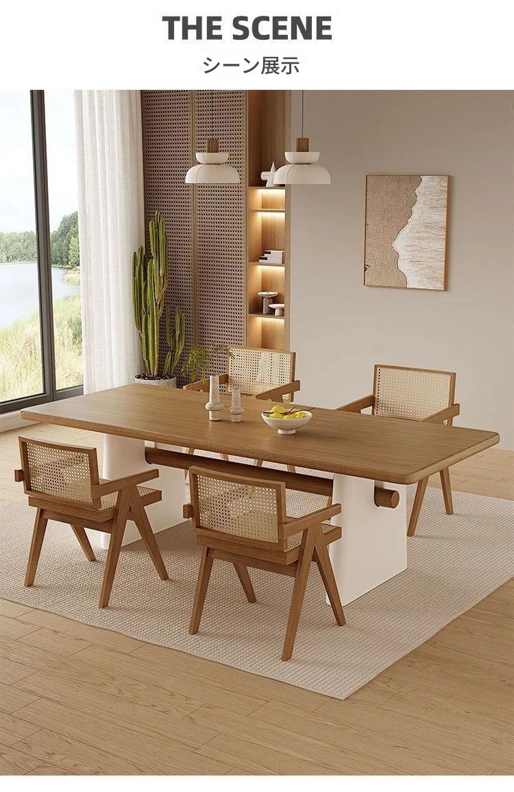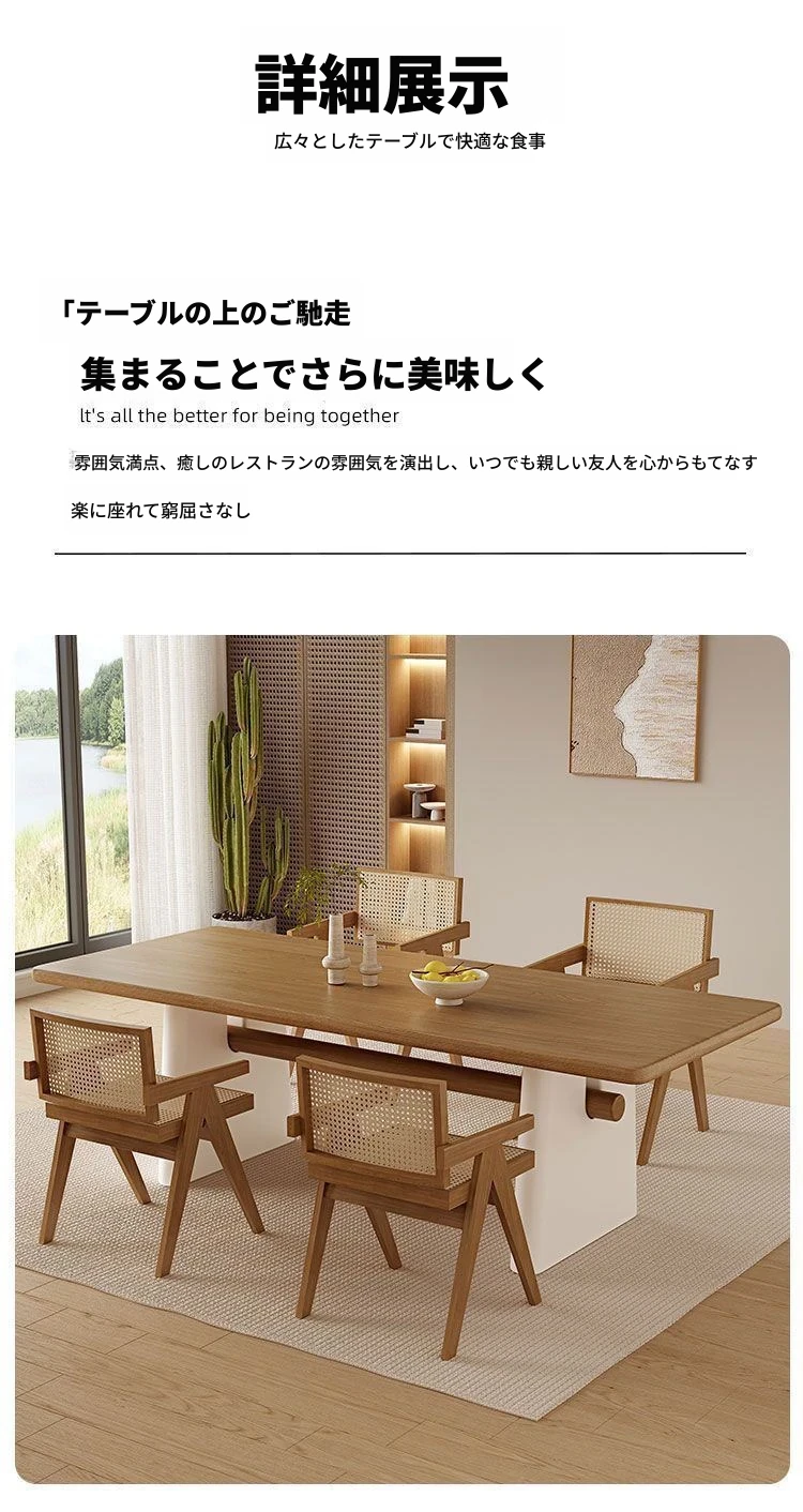 侘寂風の無垢材ダイニングテーブル&チェアセット|民宿やレストランに最適!自然の温もりを感じるオリジナルデザイン|現代的な茶卓にもなる多機能テーブルで、心地よいひとときをお楽しみください。