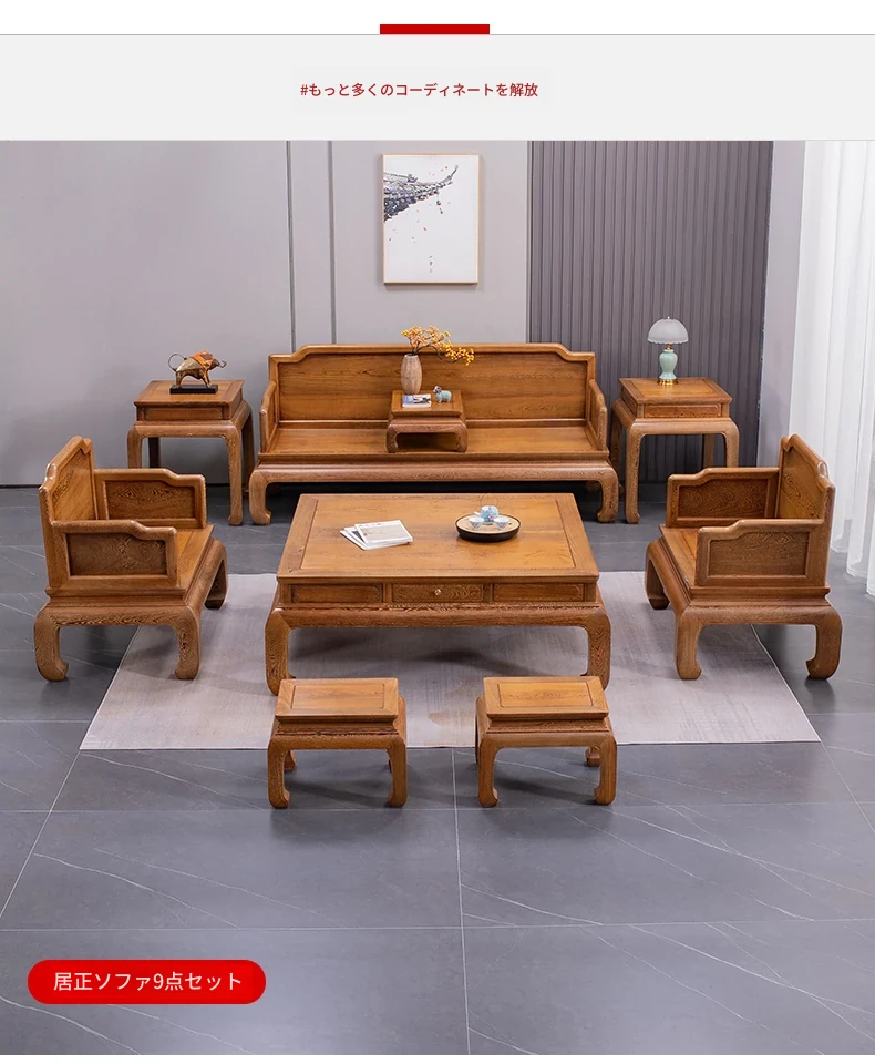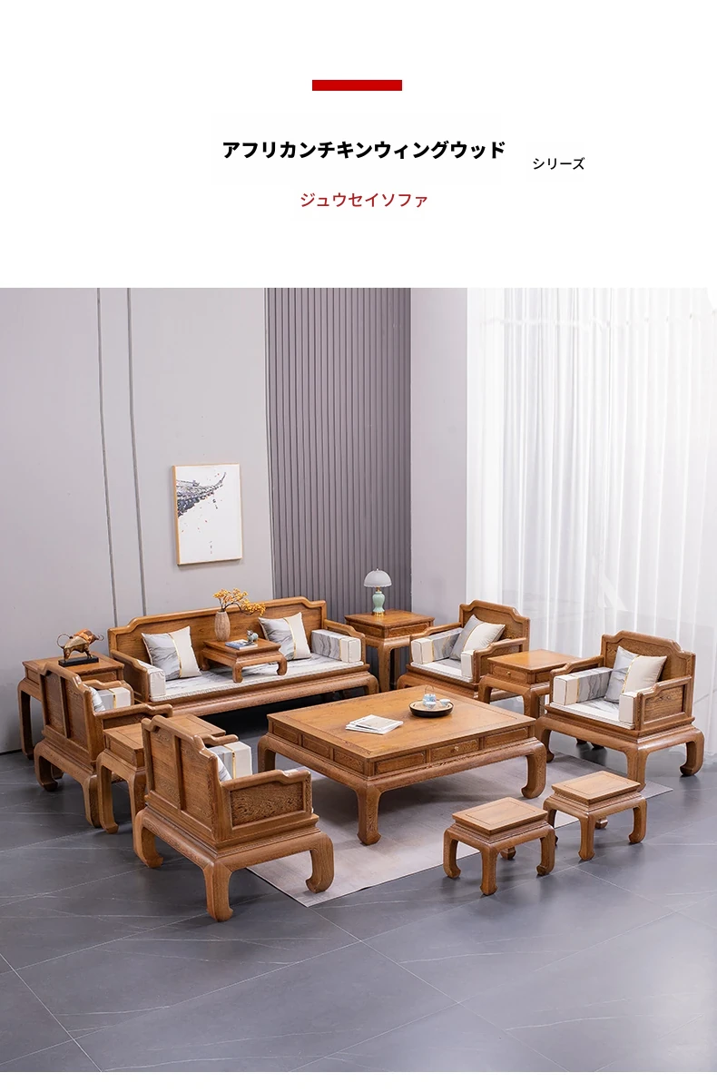 仙铭源のチキンウィングウッド製新中式全実木ソファセット - シンプルで洗練された客間にぴったりの紅木家具。大小様々な住宅に対応した、軽やかなラグジュアリー感を演出します!