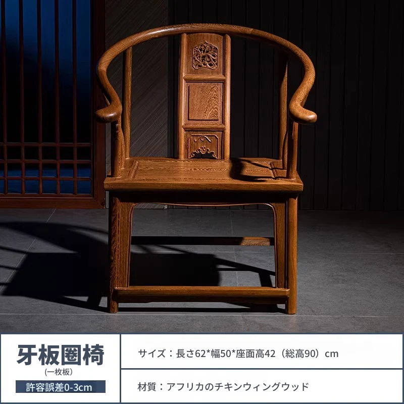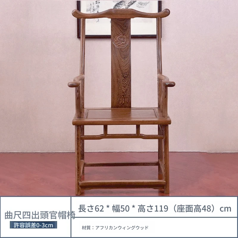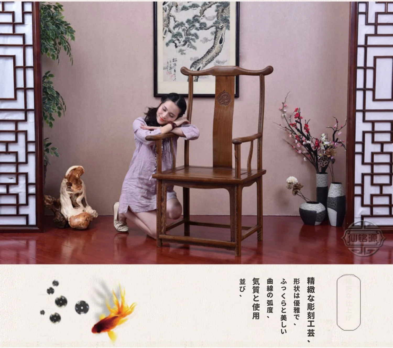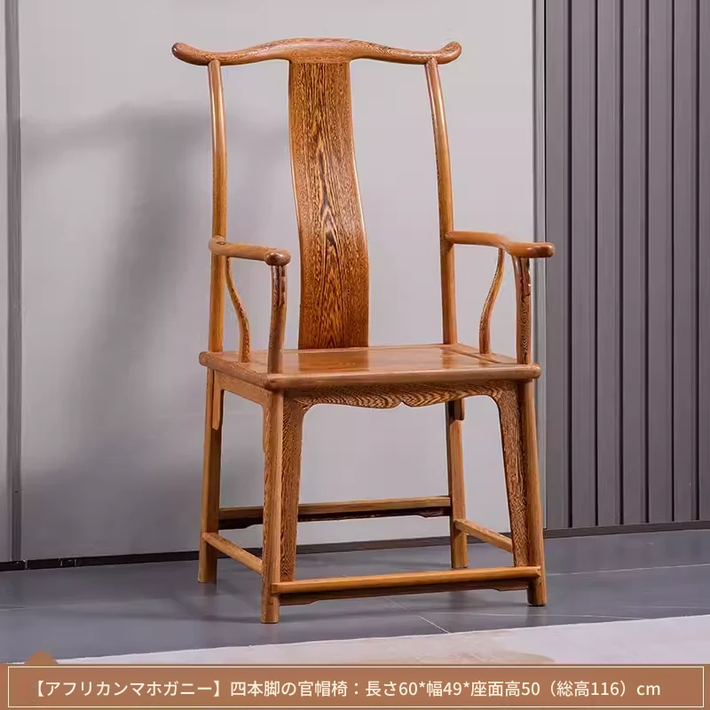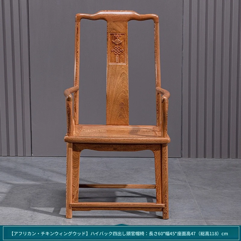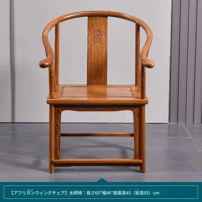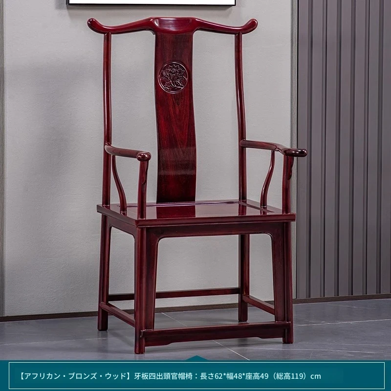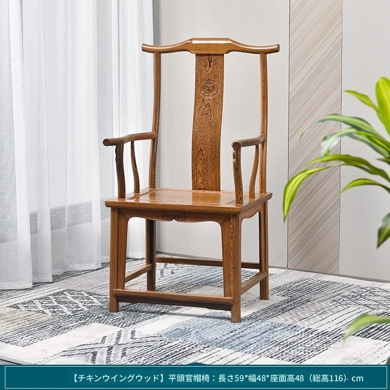 仙铭源のチキンウィングウッド製の官帽椅は、新中式デザインの実木オフィスチェアで、古風な趣を持つ赤木太師椅子。リラックスできる圈椅とダイニングチェアとしても最適。高級感あふれるインテリアにぴったり!
