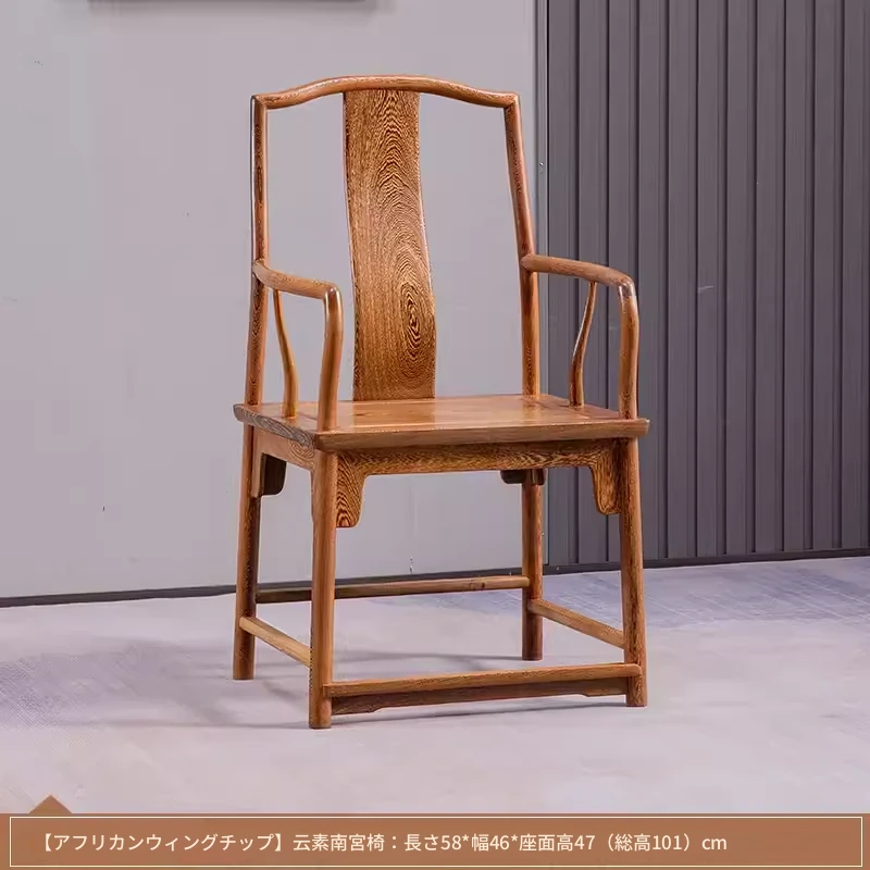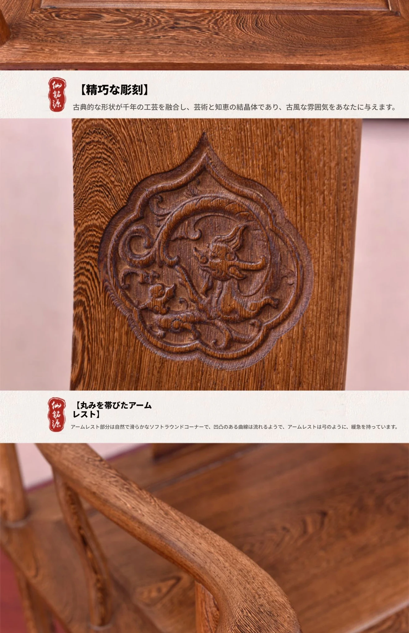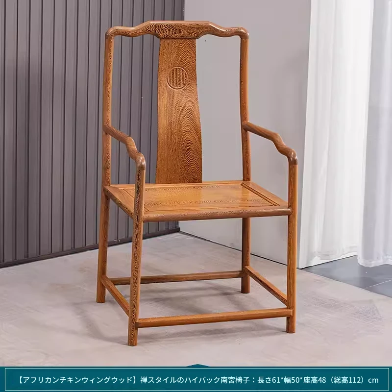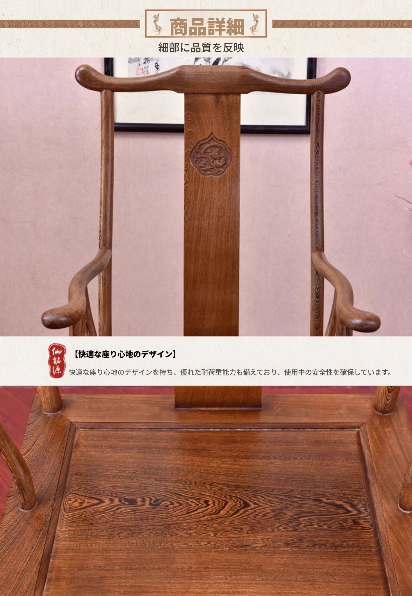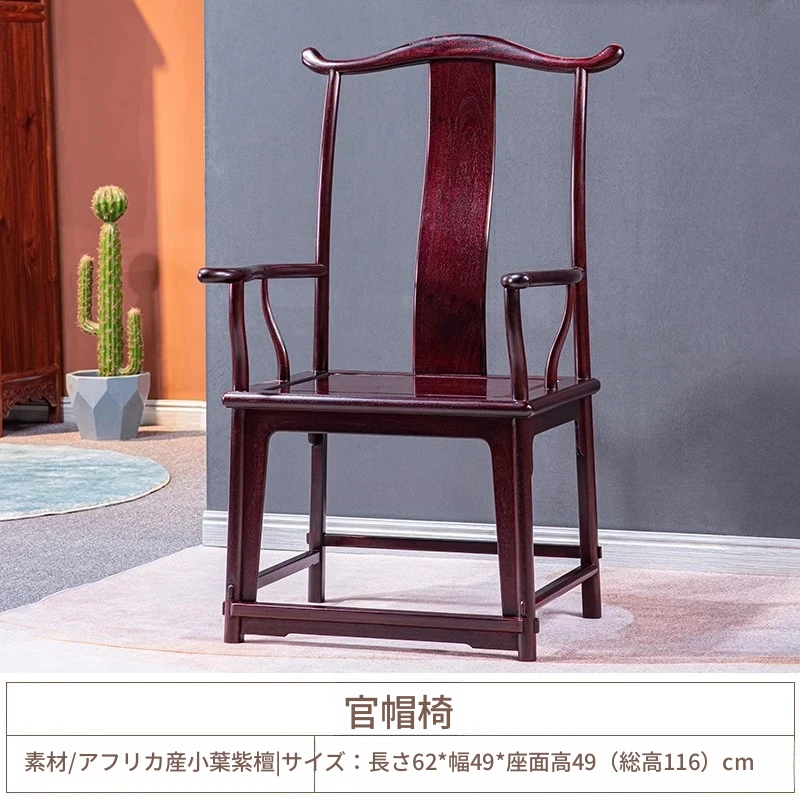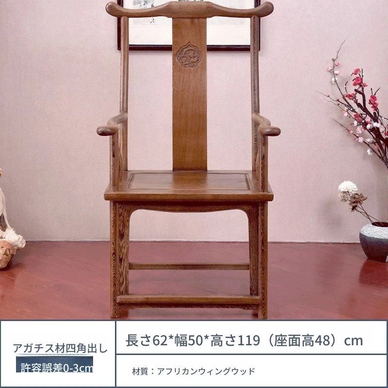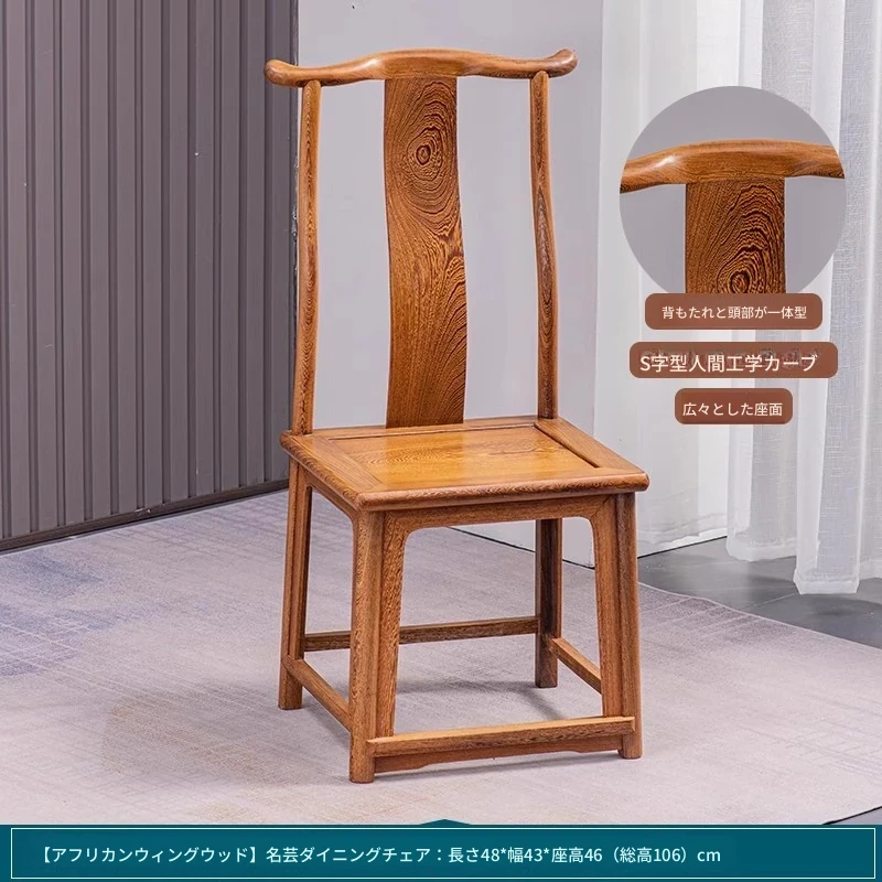 仙铭源のチキンウィングウッド製の官帽椅は、新中式デザインの実木オフィスチェアで、古風な趣を持つ赤木太師椅子。リラックスできる圈椅とダイニングチェアとしても最適。高級感あふれるインテリアにぴったり!