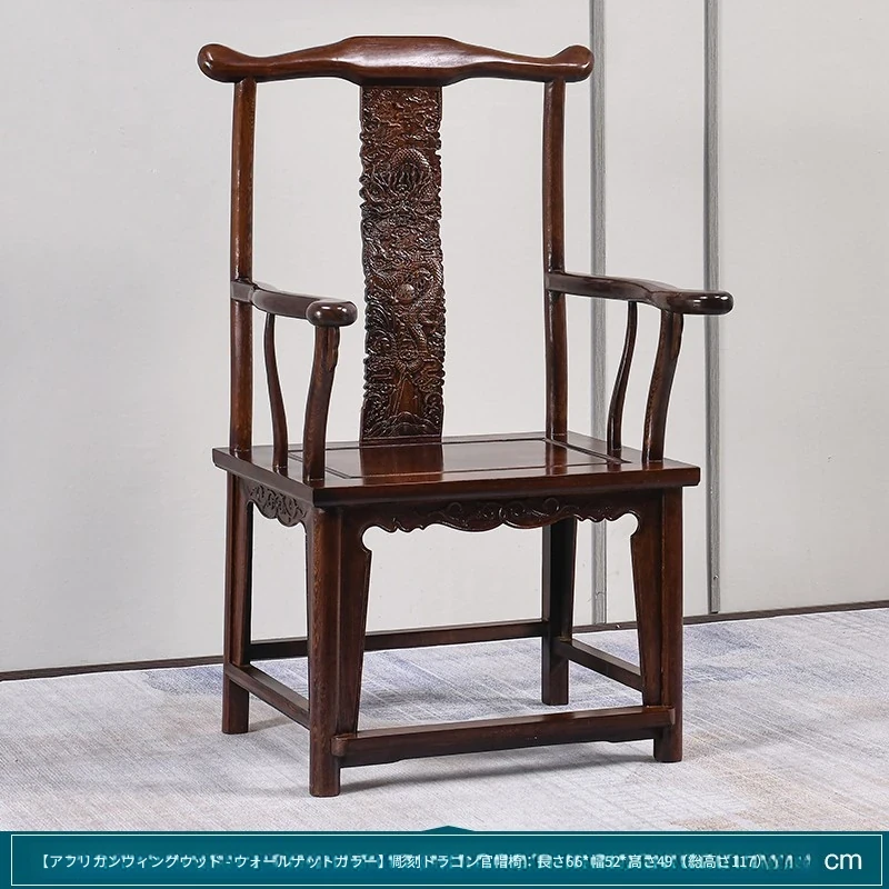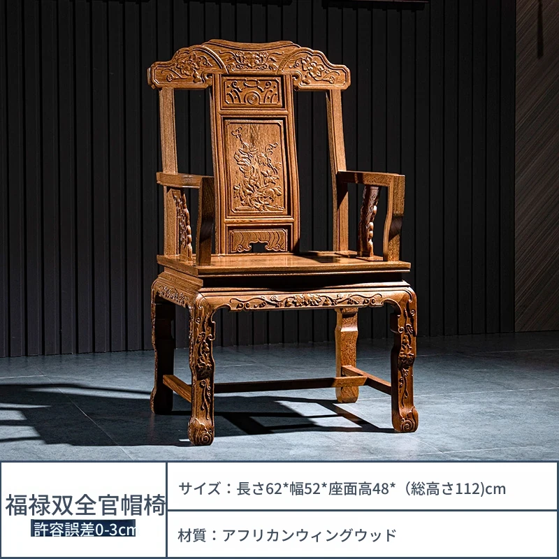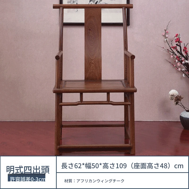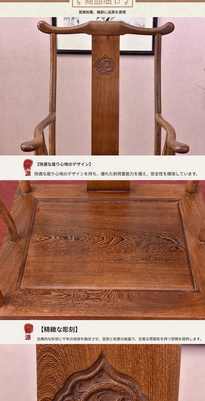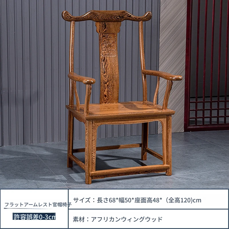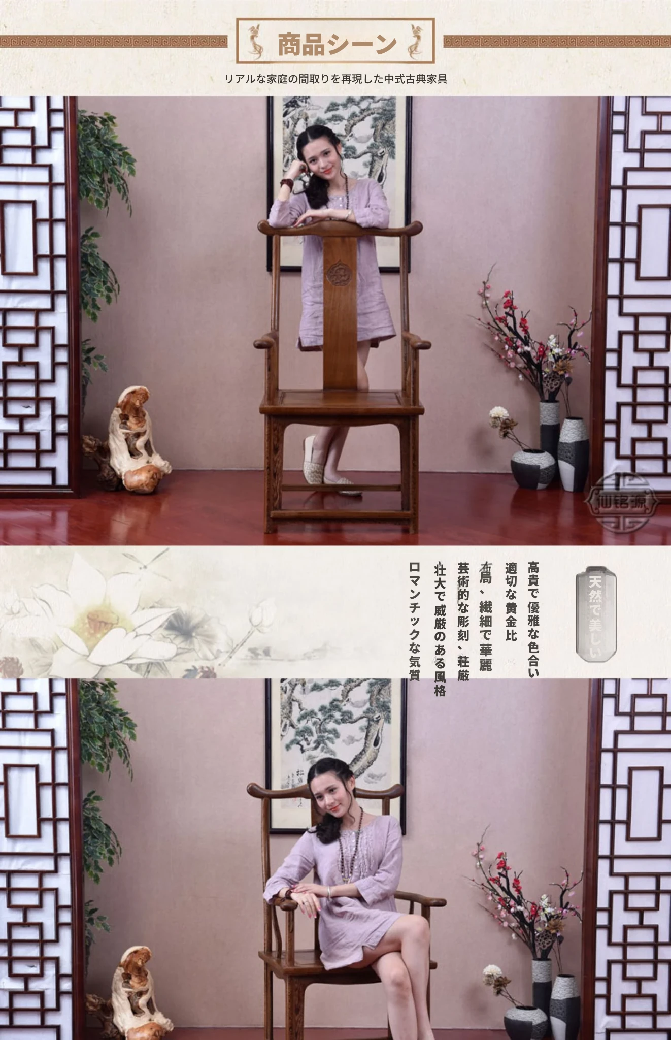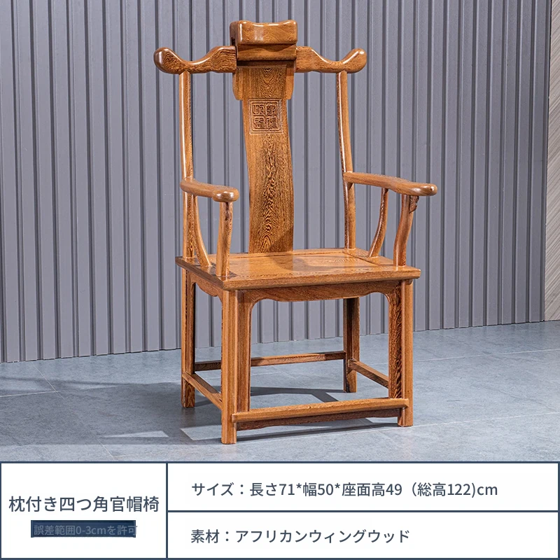 仙铭源のチキンウィングウッド製の官帽椅は、新中式デザインの実木オフィスチェアで、古風な趣を持つ赤木太師椅子。リラックスできる圈椅とダイニングチェアとしても最適。高級感あふれるインテリアにぴったり!