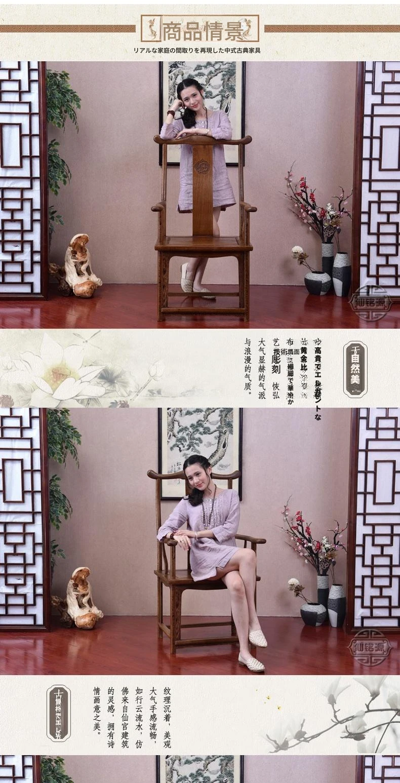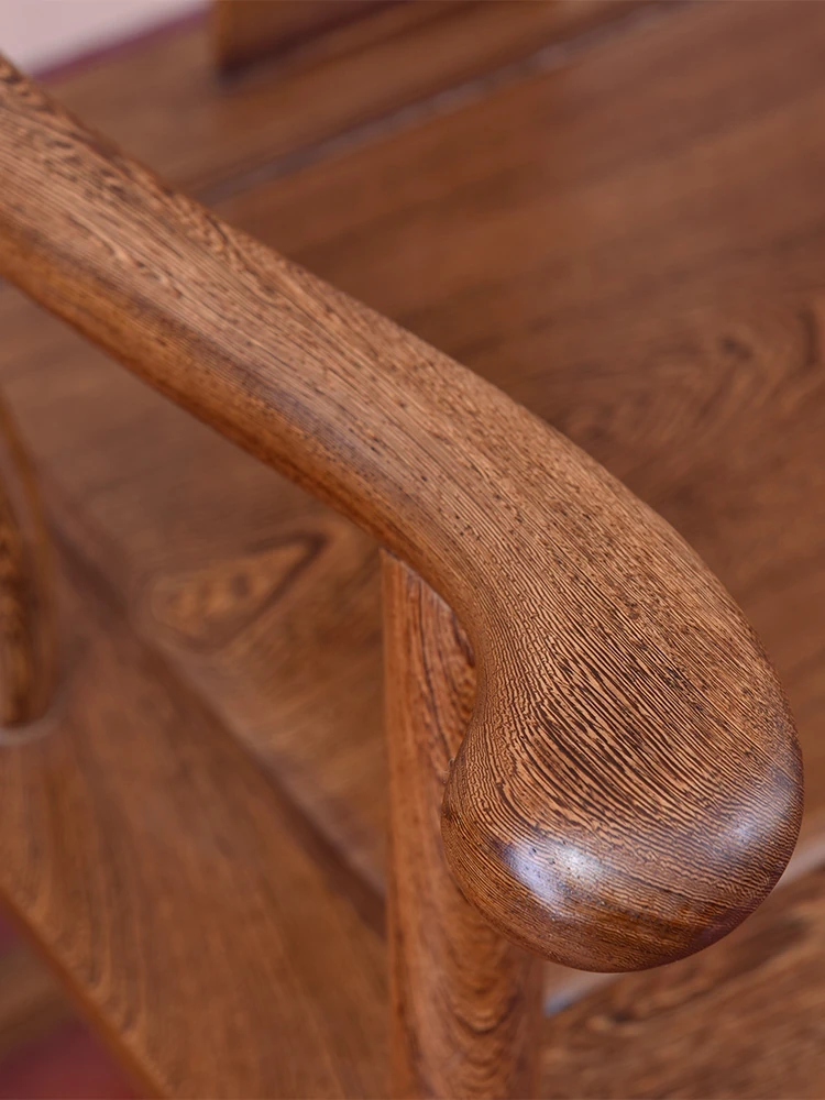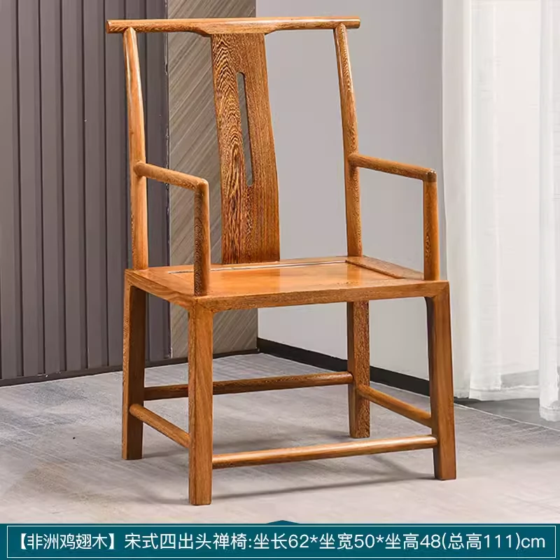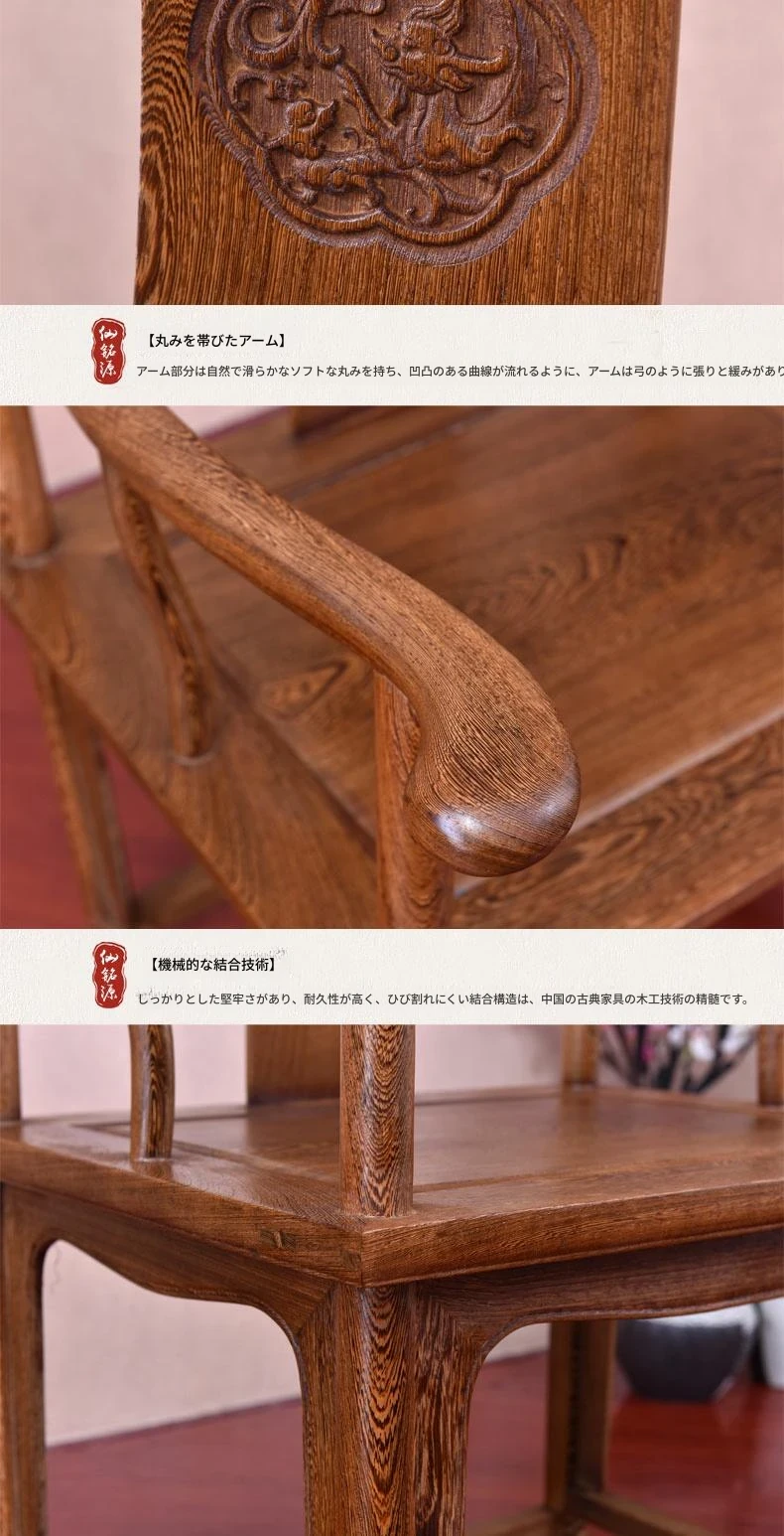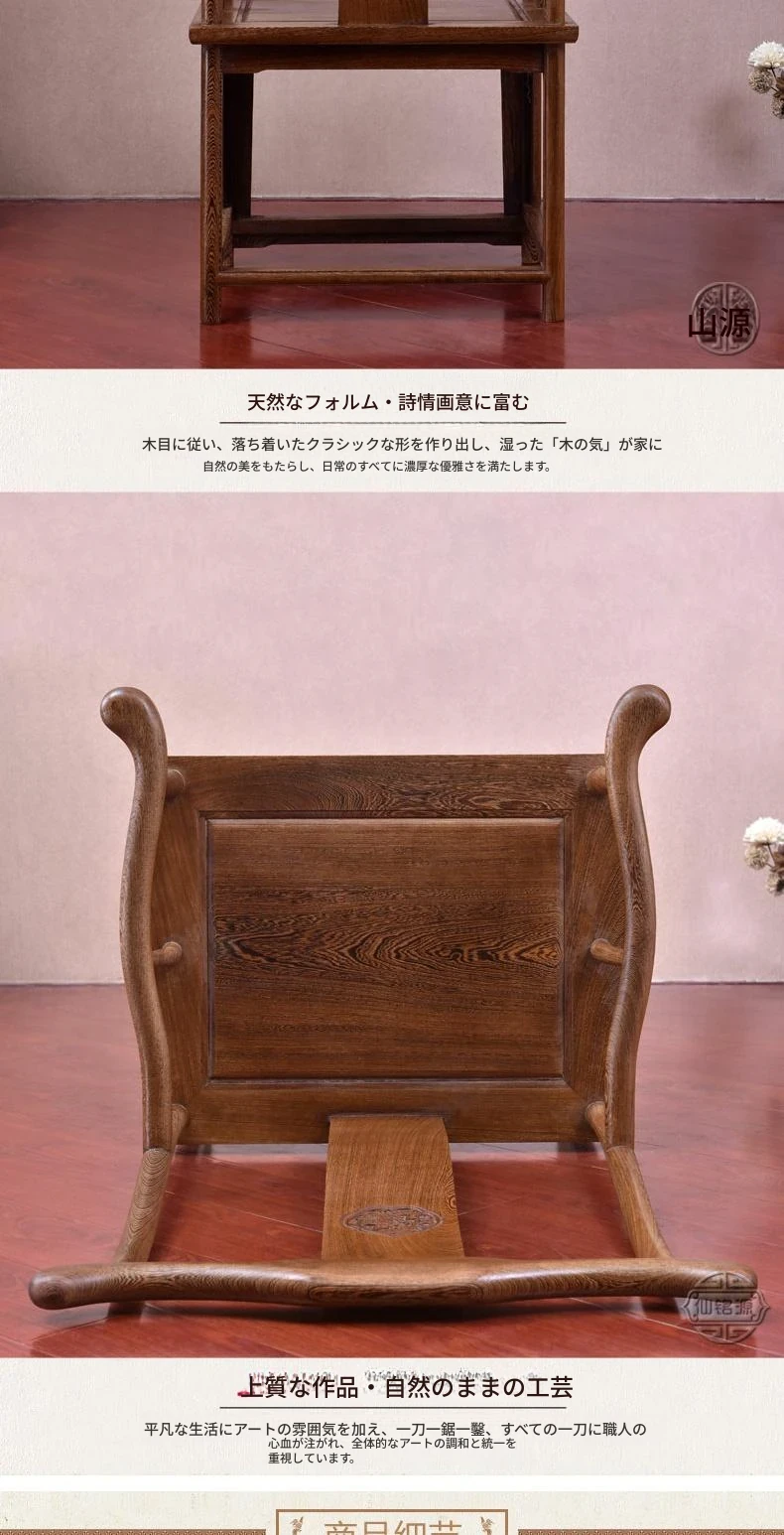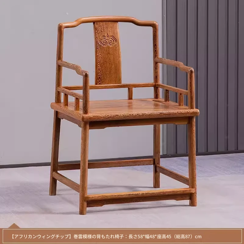 仙铭源のチキンウィングウッド製の官帽椅は、新中式デザインの実木オフィスチェアで、古風な趣を持つ赤木太師椅子。リラックスできる圈椅とダイニングチェアとしても最適。高級感あふれるインテリアにぴったり!