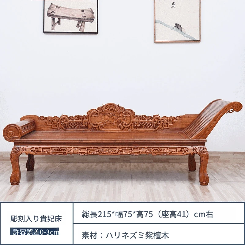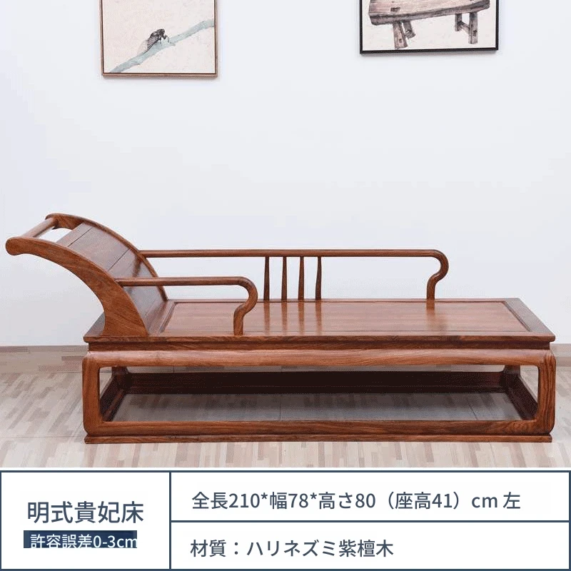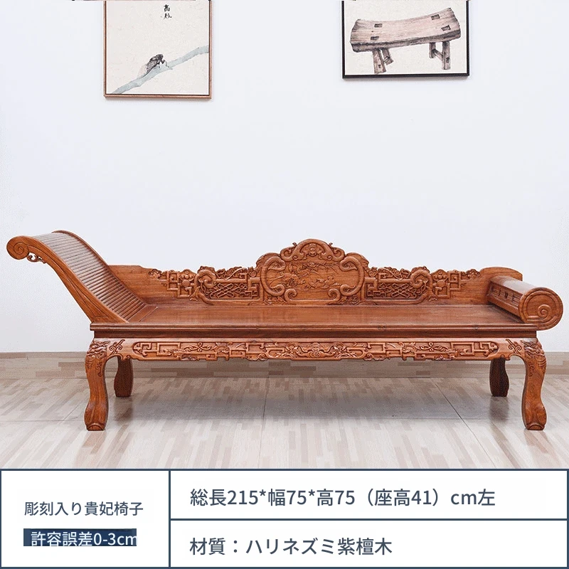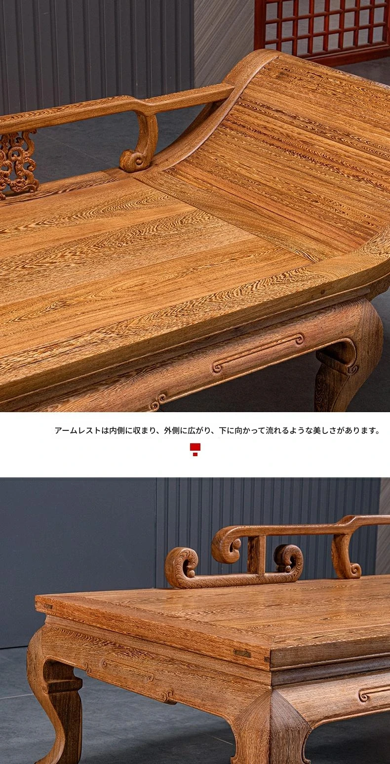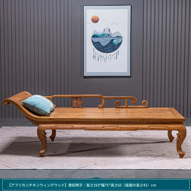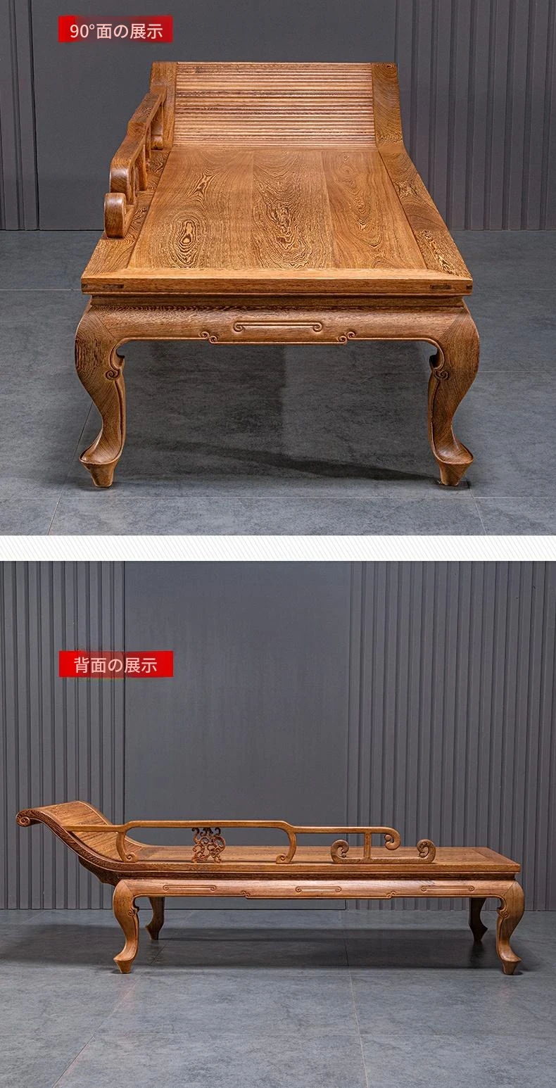 仙铭源の高級紅木家具 - 鶏翅木製の新中式貴妃床&リクライニングチェア!美しいデザインと全実木構造で、贅沢な安らぎを提供します。ロハンベッドやソファとしてもお使いいただける多機能な一品!