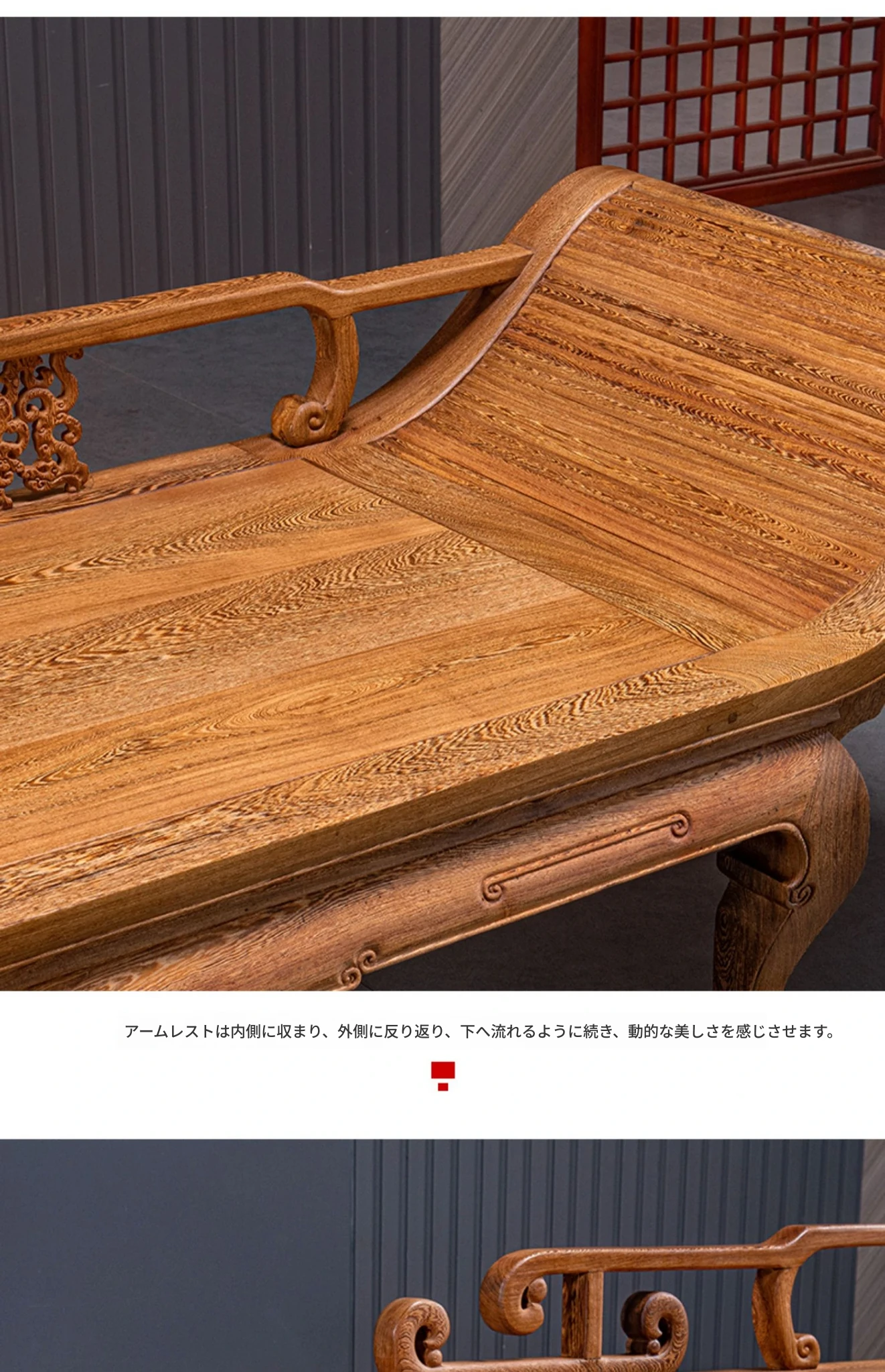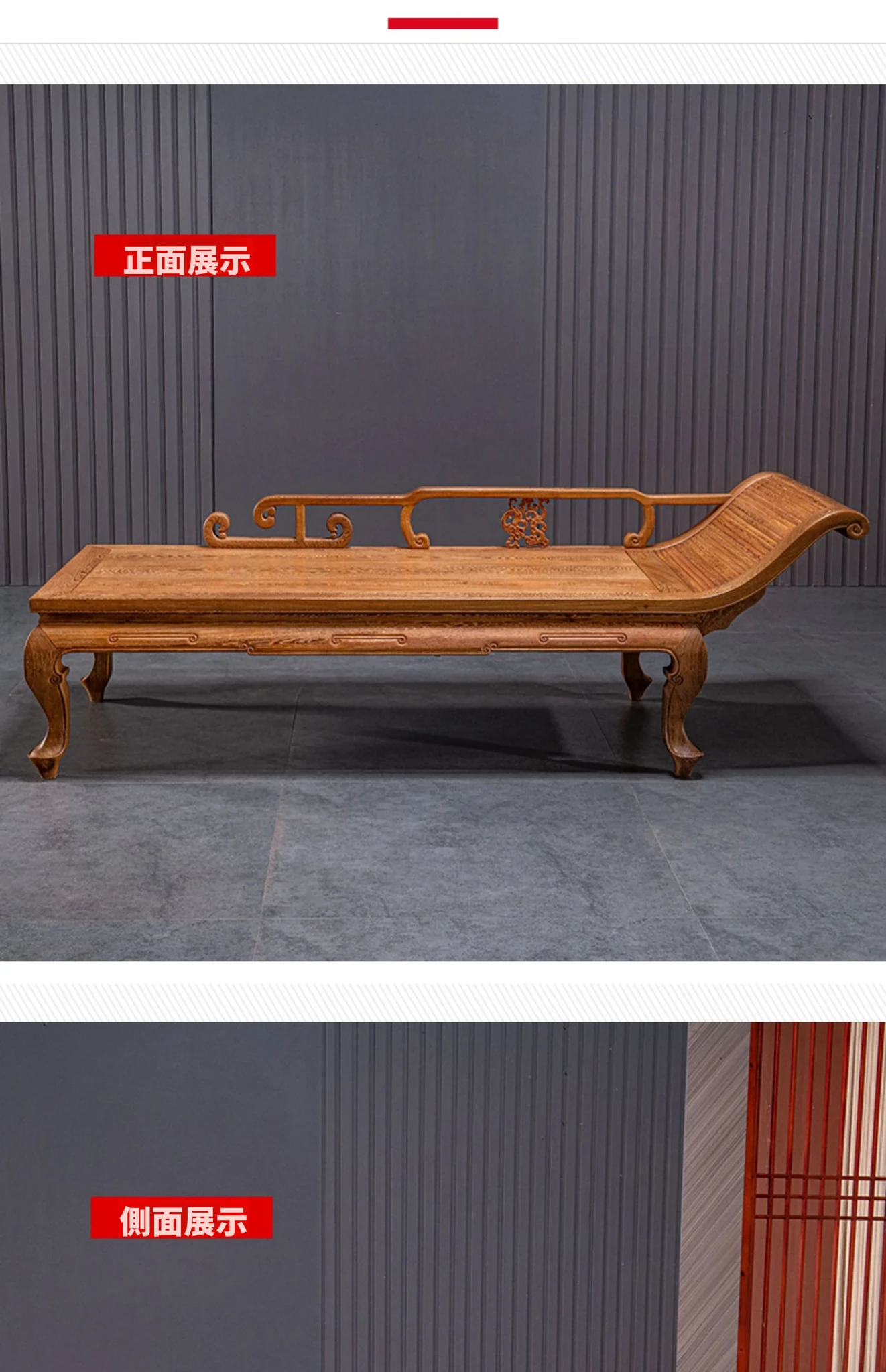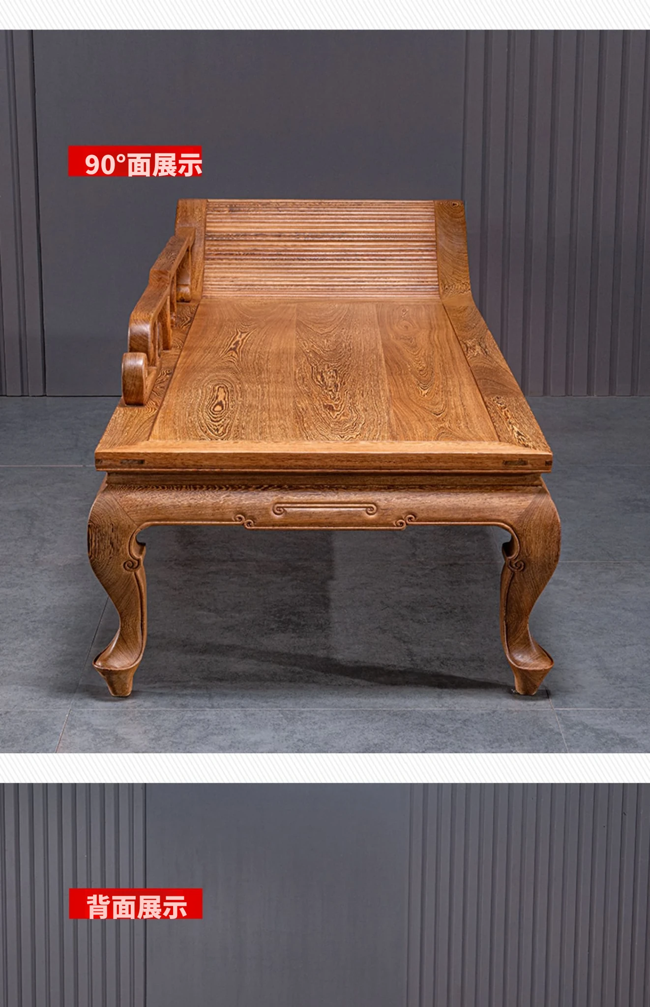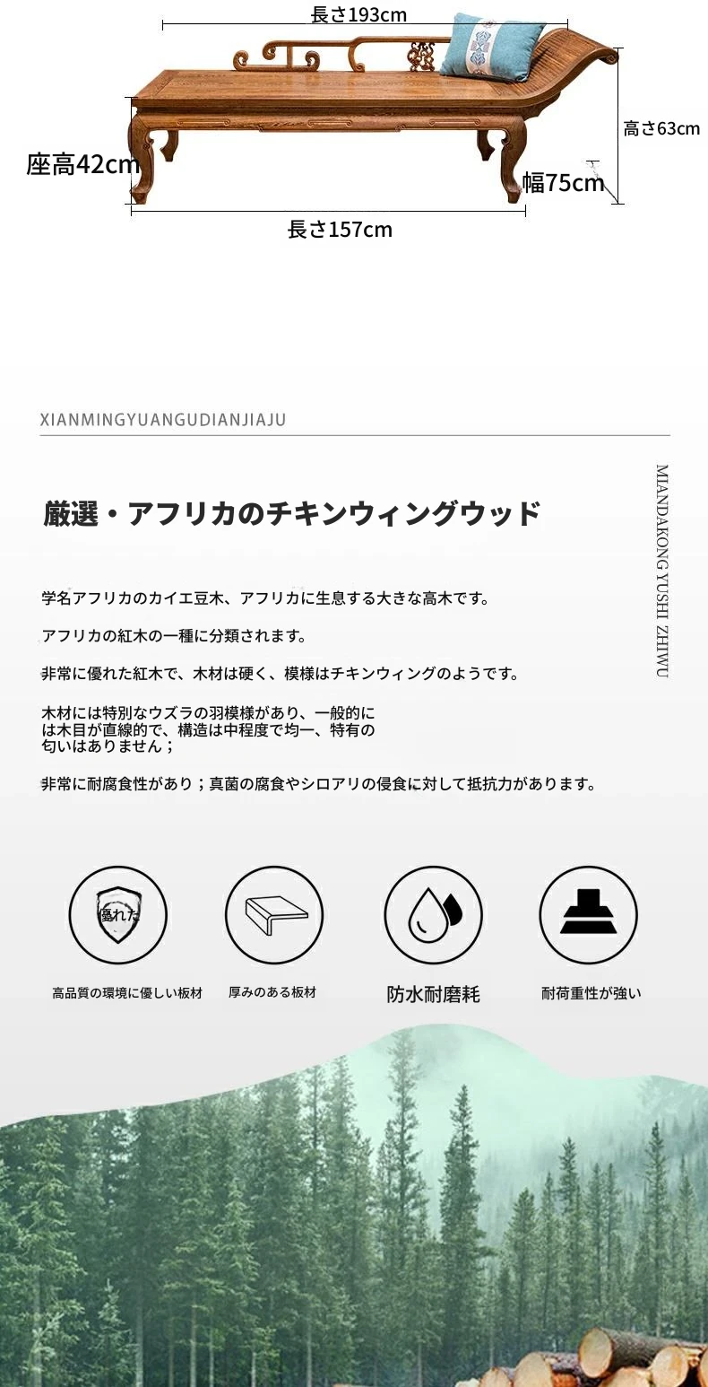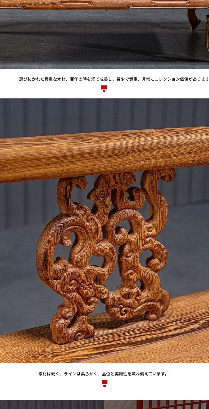 仙铭源の高級紅木家具 - 鶏翅木製の新中式貴妃床&リクライニングチェア!美しいデザインと全実木構造で、贅沢な安らぎを提供します。ロハンベッドやソファとしてもお使いいただける多機能な一品!