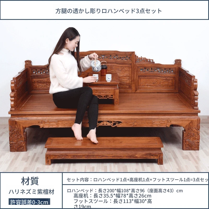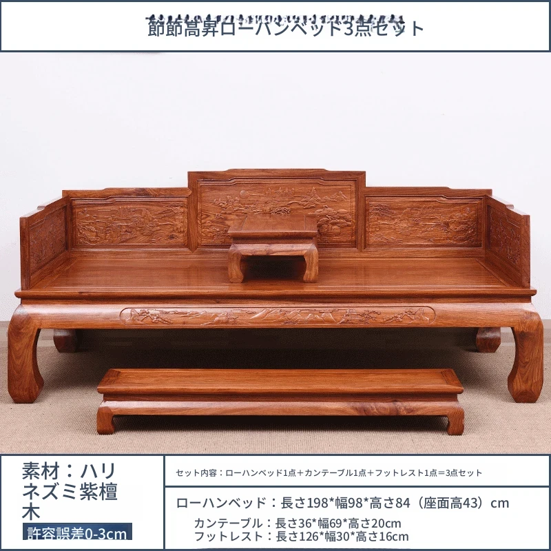 花梨節節高升羅漢ベッド三点セット