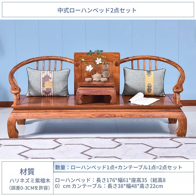 花梨中式羅漢ベッド二点セット