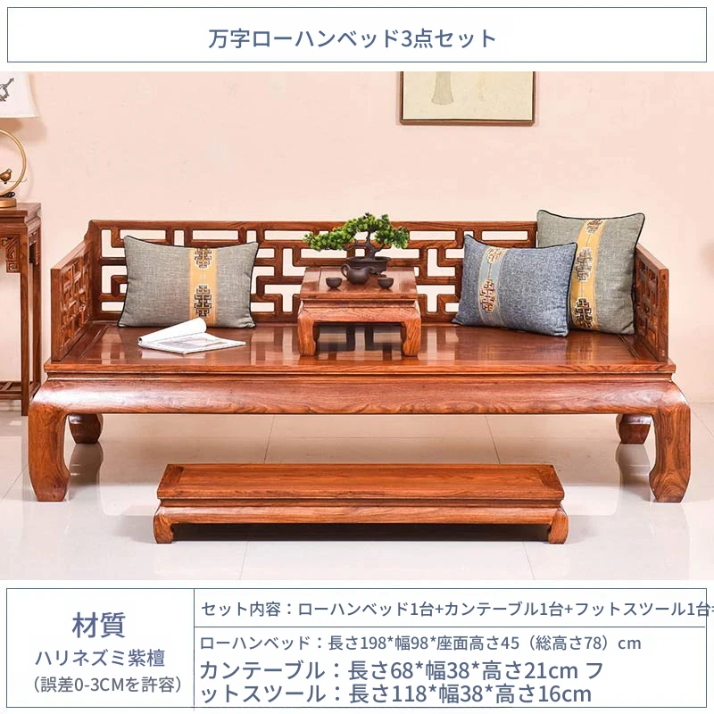 花梨万字羅漢ベッド三点セット