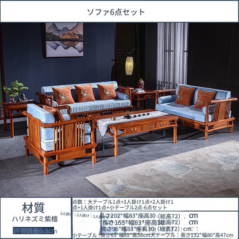 花梨木ソファ6点セット(クッション付き) 花梨木ソファ6点セット(クッション付き)