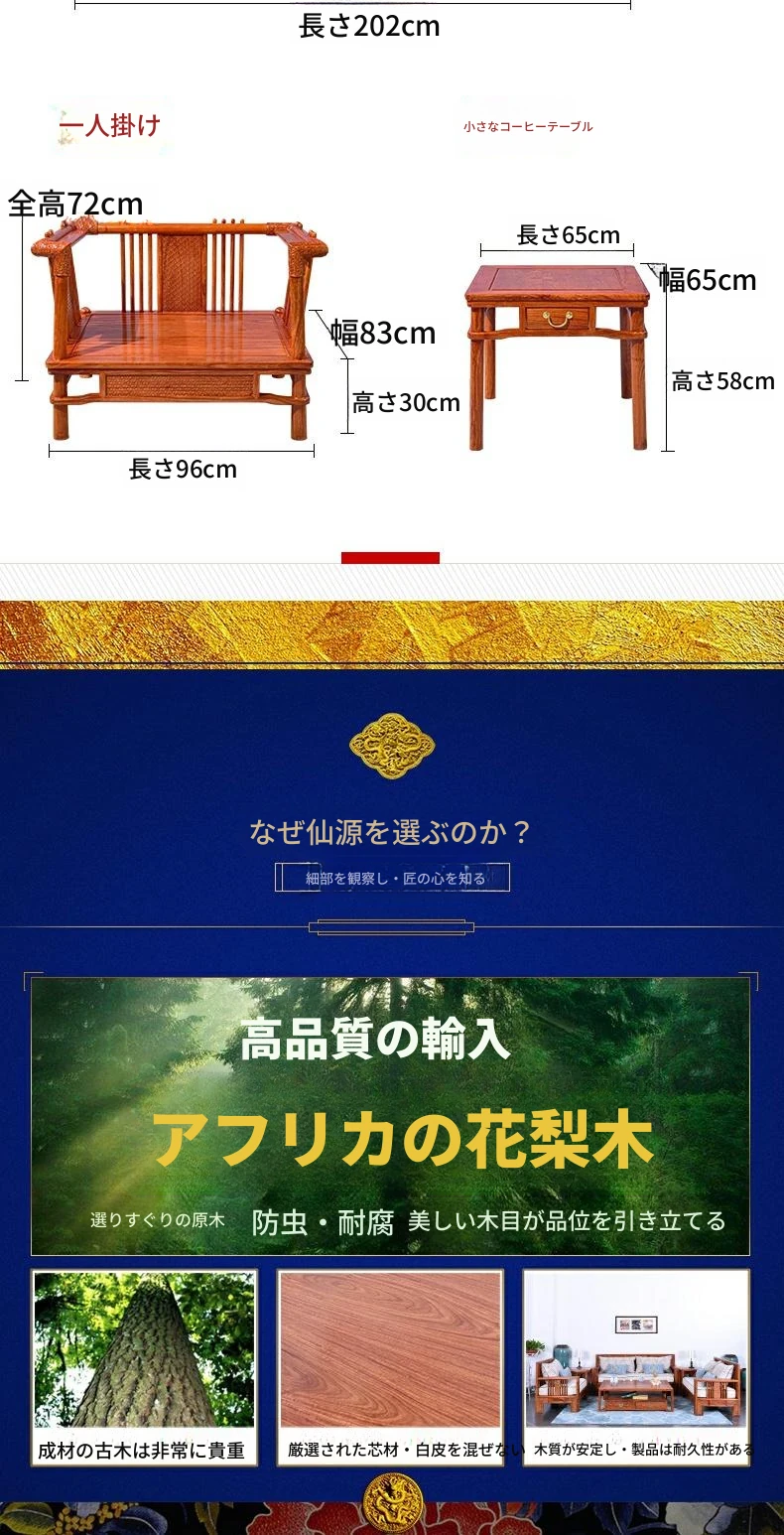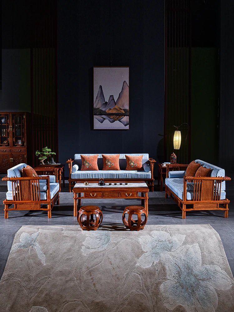 仙铭源の紅木ソファクッション - 新中式デザインの花梨木製ソファセット、実用的でスタイリッシュなリビングルーム家具。快適さと美しさを兼ね備えた高品質な選択。