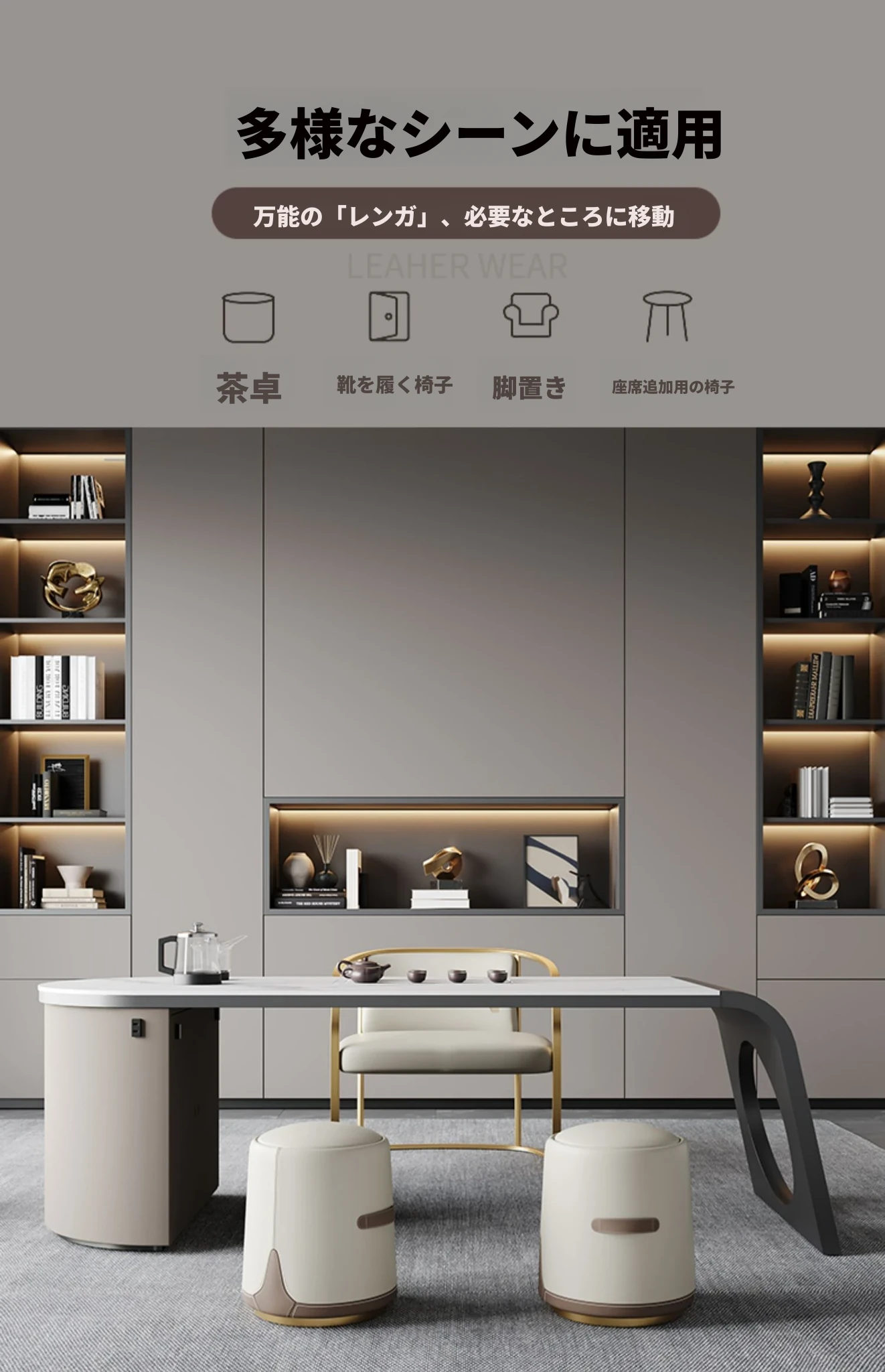 禅の心を感じる!おしゃれな茶凳 - 功夫茶台にぴったりな皮製の低い丸いスツール。シンプルで洗練されたデザイン、化粧台やバルコニーにも最適なソフトスツール。心地よいリラックスタイムをお届けします。