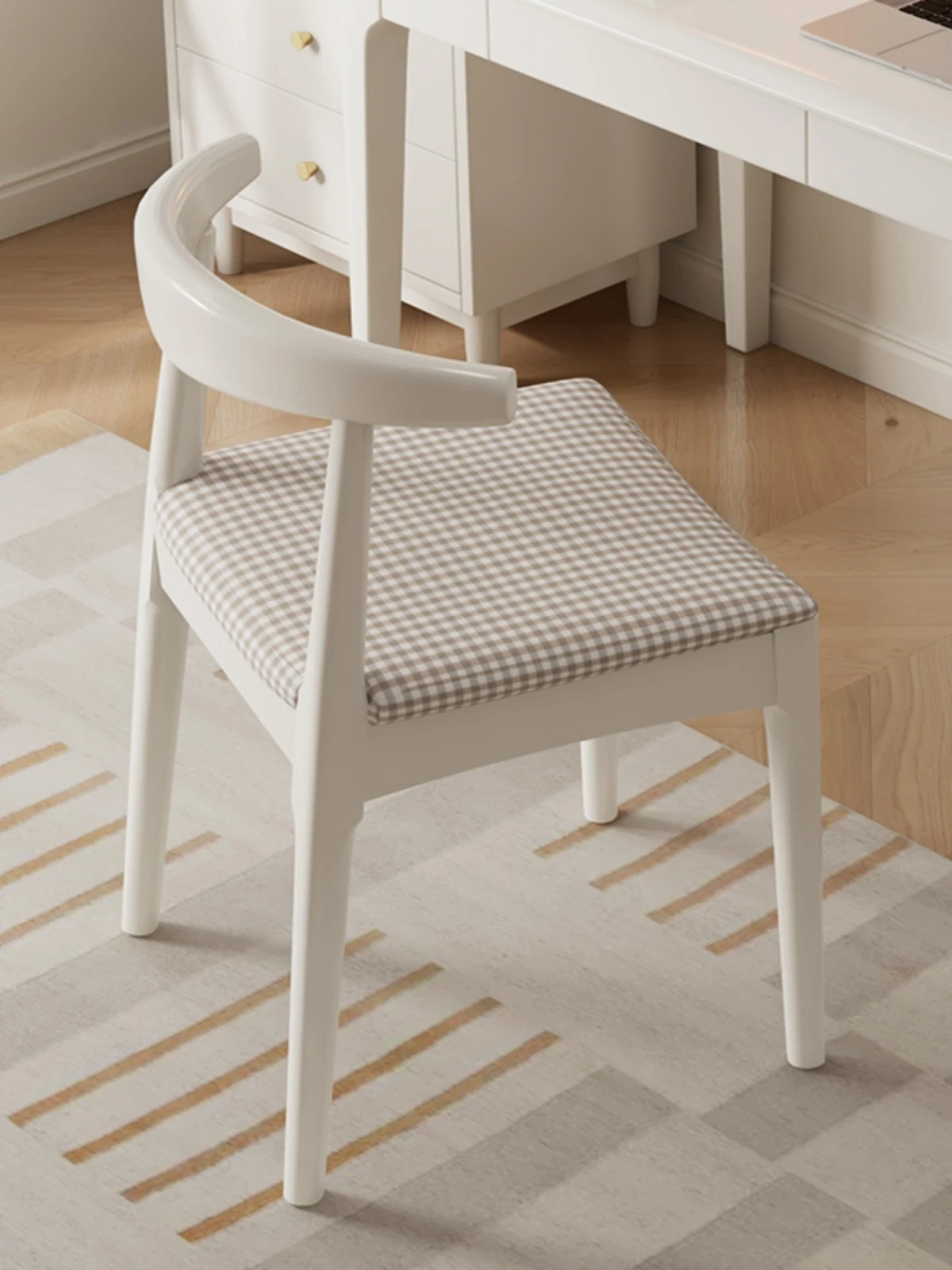 ホワイトの北欧スタイル木製デスク&チェアセット - シンプルでモダンなデザイン、学習やリラックスに最適な書斎用椅子。快適な背もたれ付き、あなたの空間をおしゃれに演出します!