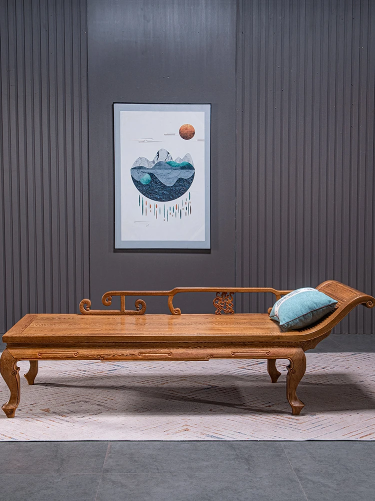 Xianmingyuan Rosewood Furniture: Wingwood Chaise Lounge, Elegant New Chinese Style Solid Wood Recliner, Luohan Bed, Corner Sofa - Perfect for Luxurious Relaxation and Stylish Living Spaces!