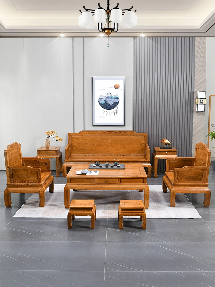 Xianmingyuan Chicken Wing Wood New Chinese Style Full Solid Wood Sofa Set - Minimalist Luxury Furniture for Living Room, Perfect for Small and Large Spaces