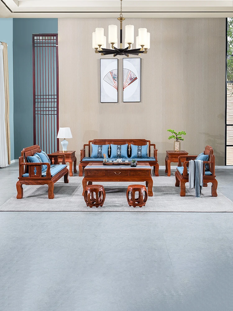 Xianmingyuan Solid Wood Sofa Cushion - New Chinese Style Rosewood Sofa Set for Living Room, Elegant and Durable Furniture Combination