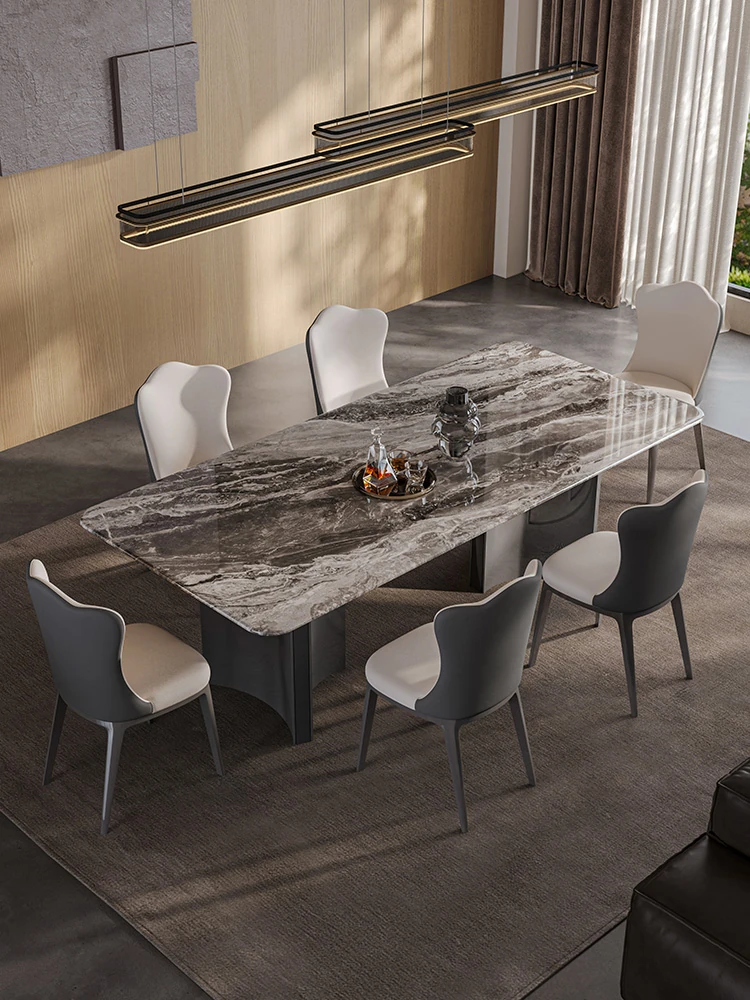 Luxury Imported Natural Kary Ice Jade Rectangular Marble Dining Table Set – Elegant High-End Home Furniture with Chairs, Perfect for Sophisticated Dining Experiences