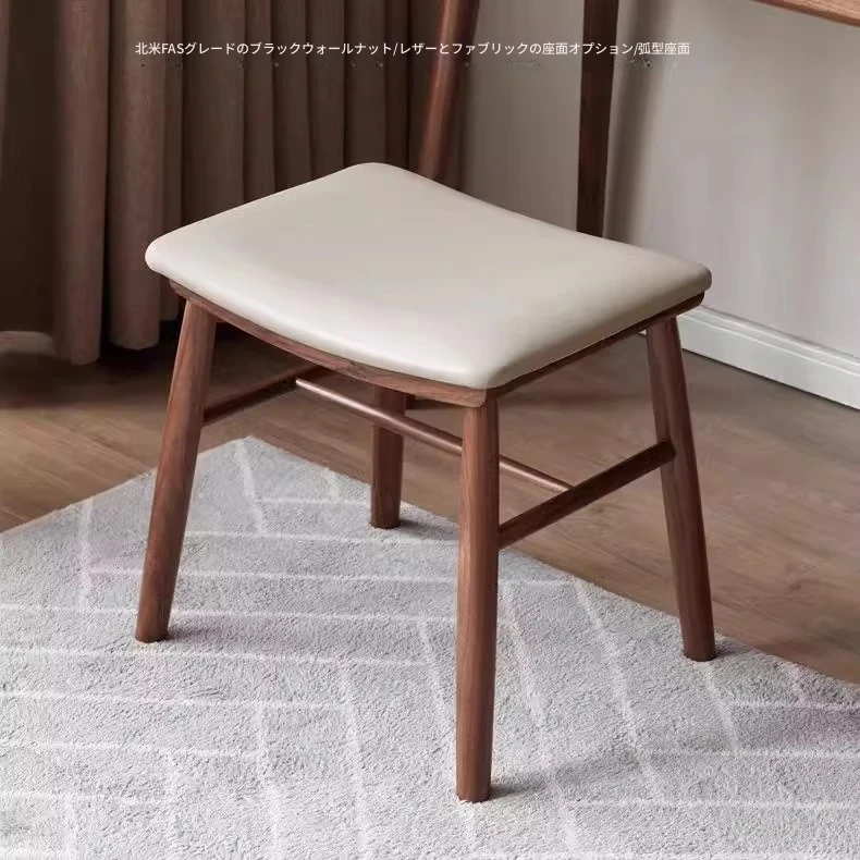 北欧風の無垢材化粧台スツール - ブラックウォールナットの高級感溢れるデザイン!シンプルでスタイリッシュな日本式の大きなクッション付きスツール。寝室にぴったりのアイテムで、毎日のメイクアップをもっと楽しく!