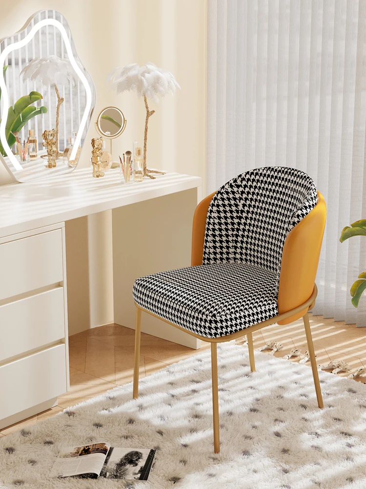 北欧風シンプルな軽奢化粧台スツール - 背もたれ付き、コンパクトでおしゃれなデザイン!小さな部屋にもぴったりの人気の化粧椅子。あなたの美しさを引き立てる、リラックス空間を演出します!