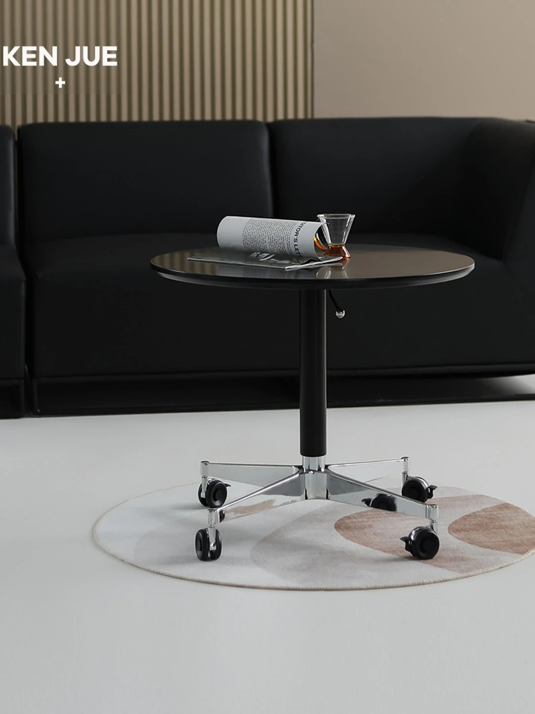 シンプルでモダンな昇降式ラウンドテーブル|多機能コーヒーテーブル・サイドテーブル|バルコニーやリビングに最適!お洒落で使いやすいデザインで、どんな空間にもフィットします。